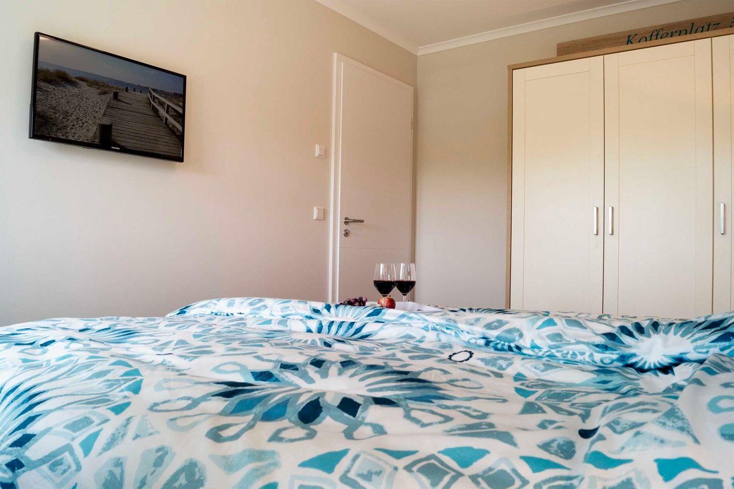 • Schlafzimmer 1: Boxspringbett (2×?90?×?200?cm), Flat-TV, Kleiderschrank, Verdunklung [&] Fliegengitter