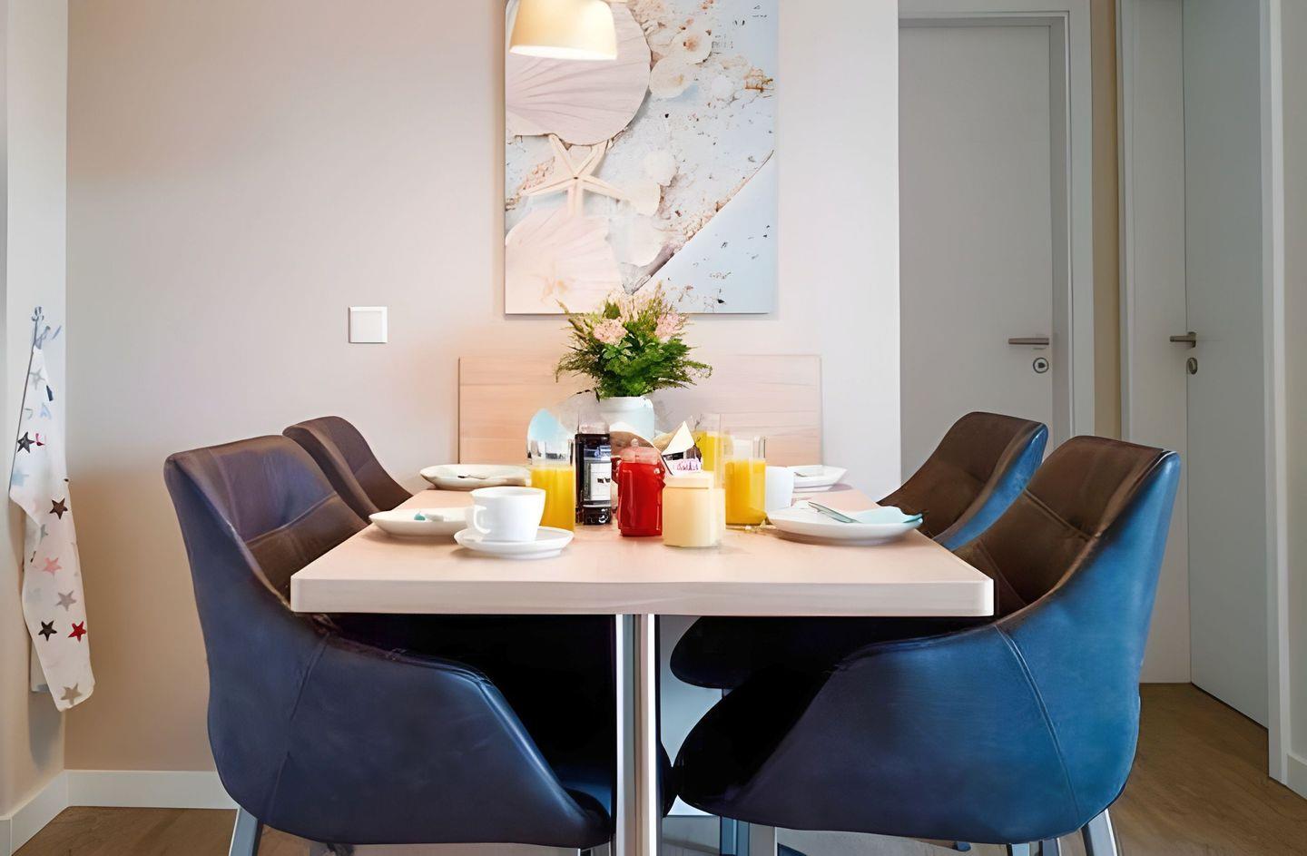 Die Ferienwohnung Haus Strandhafer WE 05 „Meermomente“ in Börgerende bietet auf ca. 53 m² Platz für bis zu vier Personen und verfügt über zwei Schlafzimmer, ein Badezimmer sowie einen offenen Wohn- und Küchenbereich. Ein Balkon mit eingeschränktem Meerblick, kostenloser Privatparkplatz, WLAN und moderne Küchenausstattung sorgen für Komfort. Der Strand ist nur 300?m entfernt.