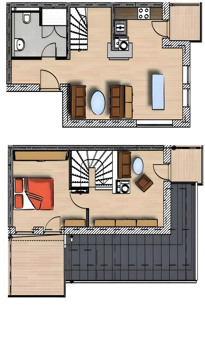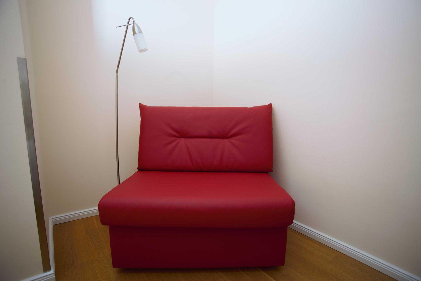 Ein großes Schlafzimmer mit Doppelbett sowie ein kleines Schlafzimmer mit Einzelbett und ausklappbarem Schlafsessel sorgen für süße Träume. Ein geräumiger Kleiderschrank verschafft zusätzlichen Stauraum. Wäscheset, Kinderreisebett und Kinderhochstuhl können kostenpflichtig zugebucht werden.