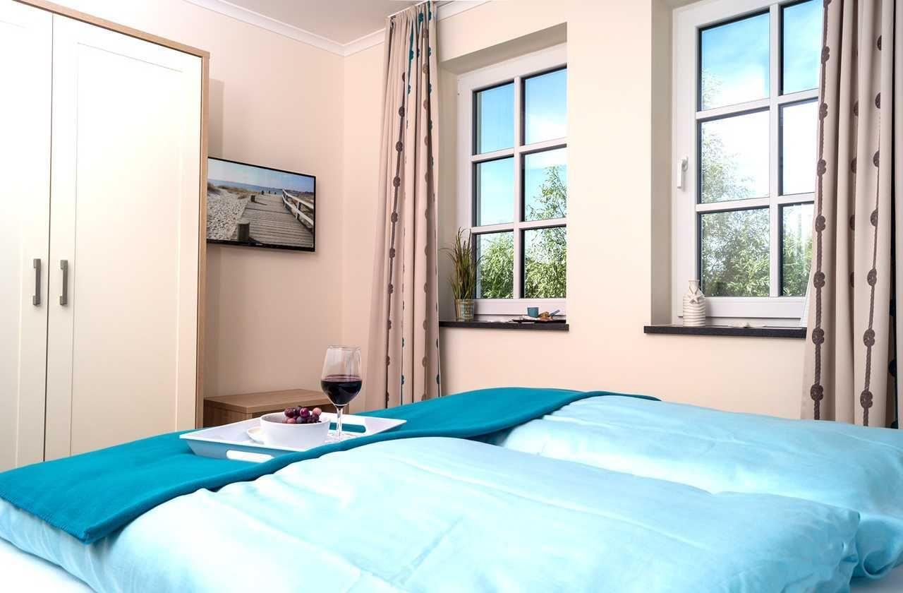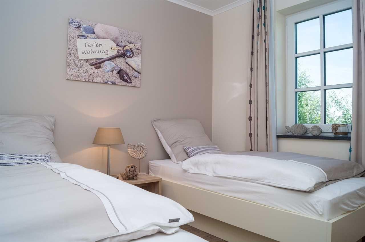 Schlafzimmer befinden sich zwei gemütliche Einzelbetten (90 x 200 cm) mit einer