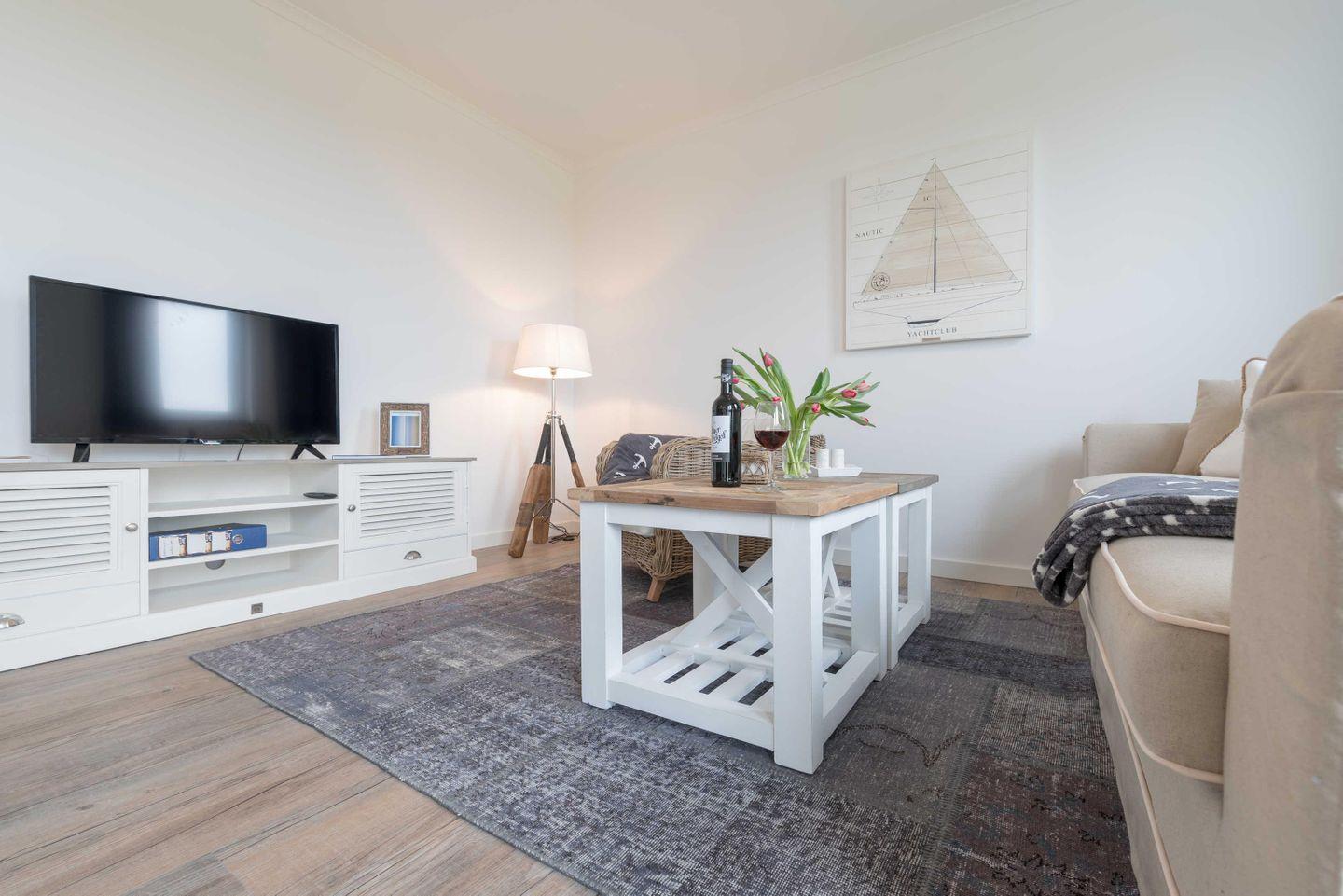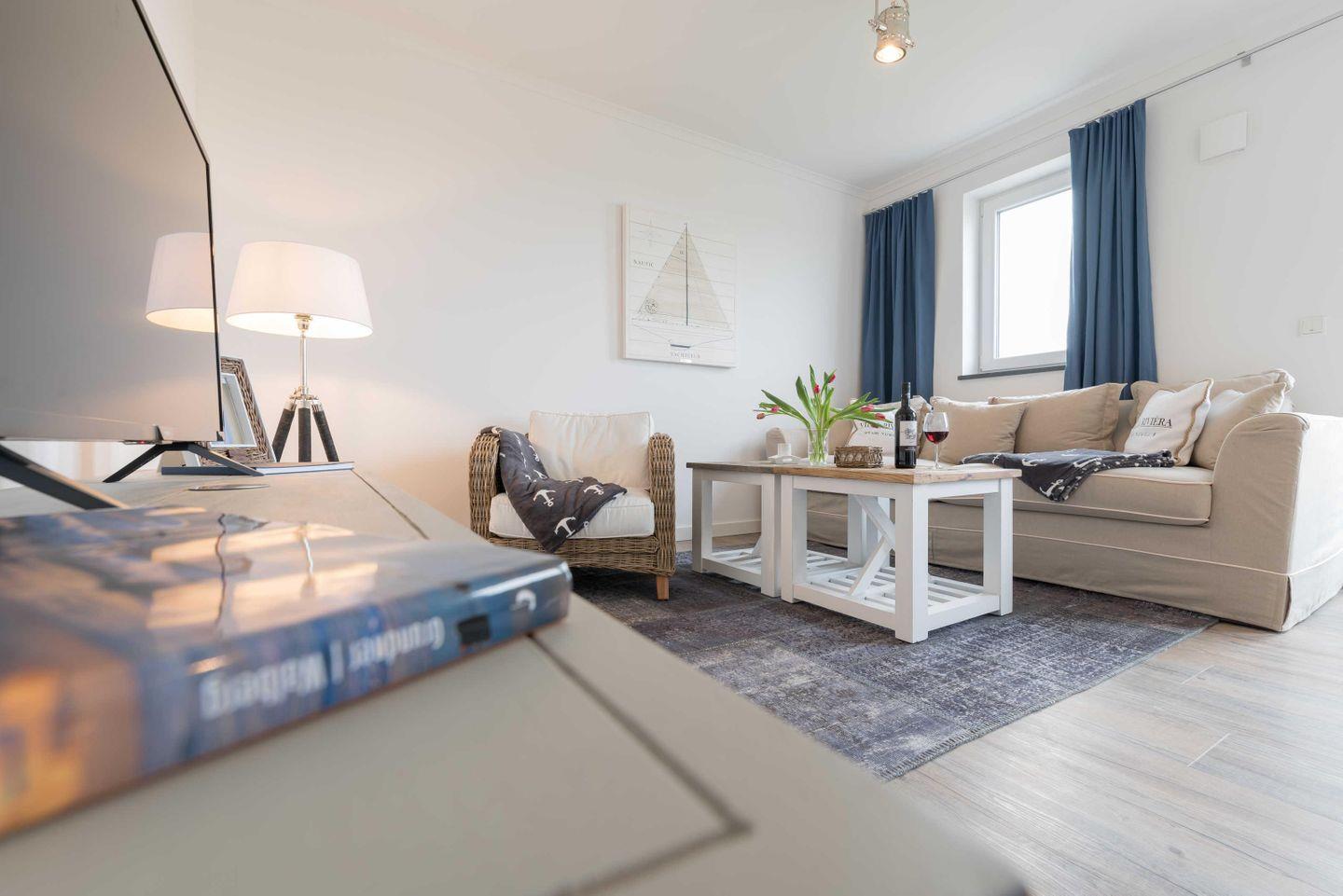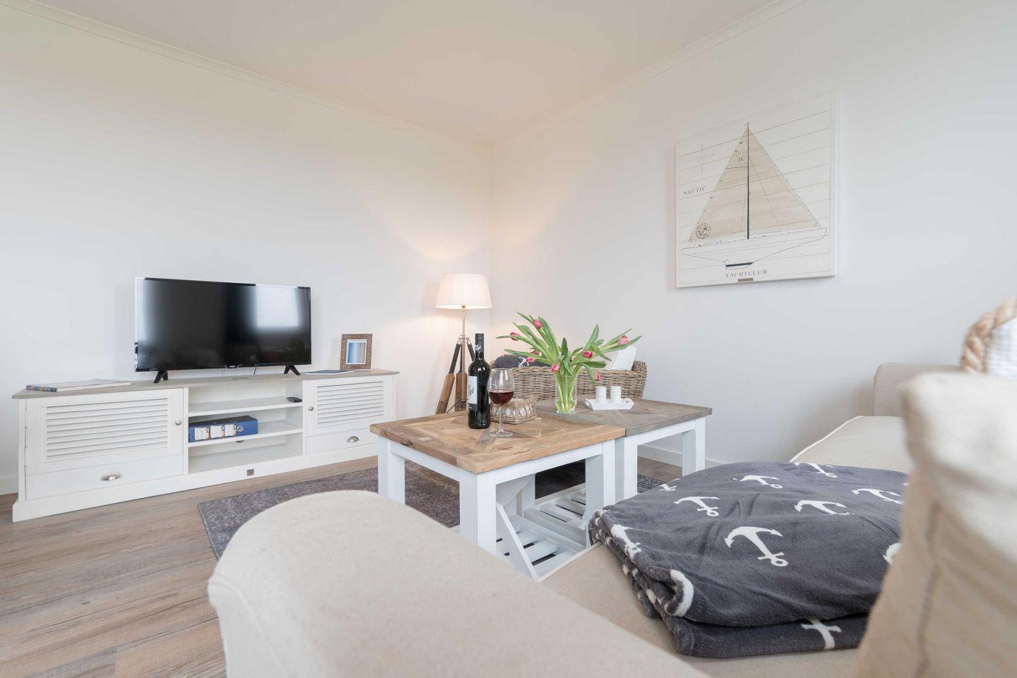 Die im maritimen Stil eingerichtete 2-Zimmer Wohnung besteht aus einem