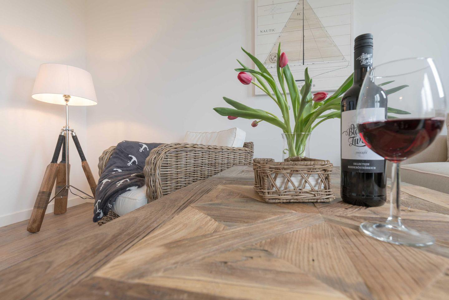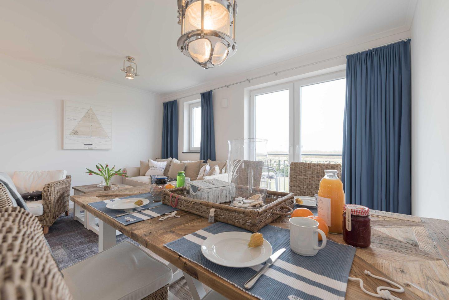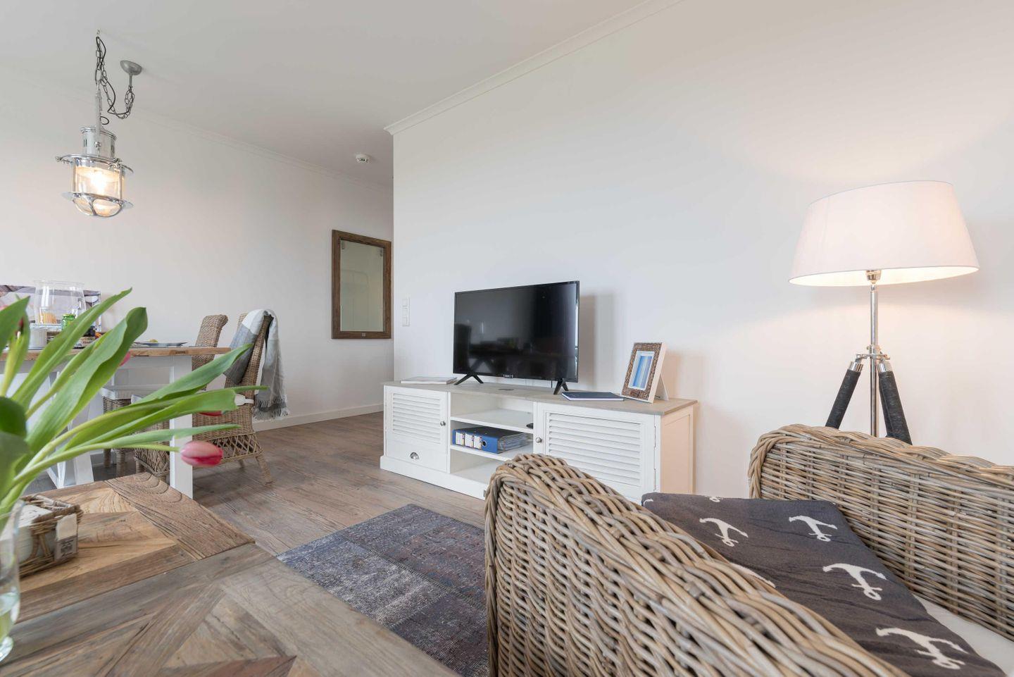 Die im maritimen Stil eingerichtete 2-Zimmer Wohnung besteht aus einem