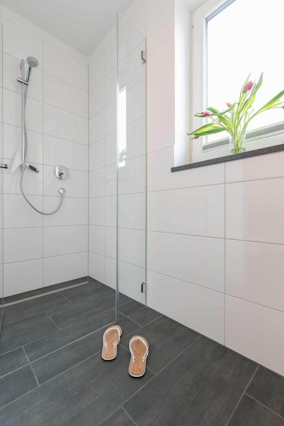 ebenerdiger Dusche verfügt über einen Waschtisch mit großem Spiegel,