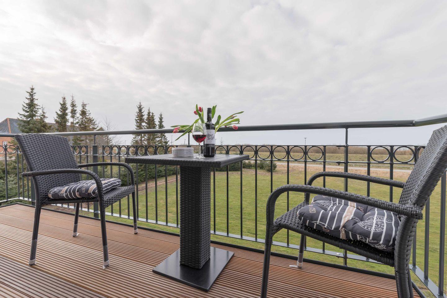 Moderne 2-Zimmer-Ferienwohnung "Santa Sophia" mit Balkon und Meerblick in Börgerende, nur 100 m vom Strand entfernt.