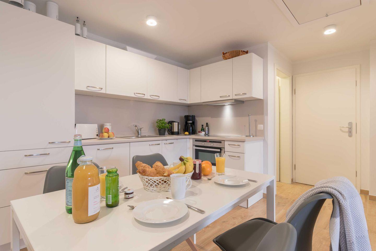 und einen Blu-Ray-Player. Die offene Einbauküche bietet alles Nötige für Ihren