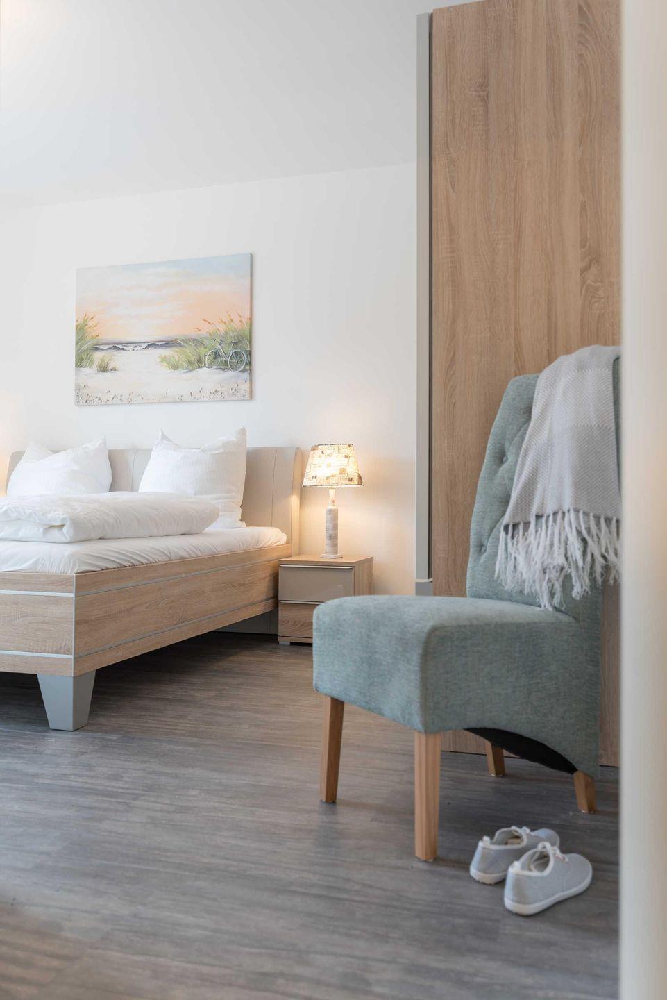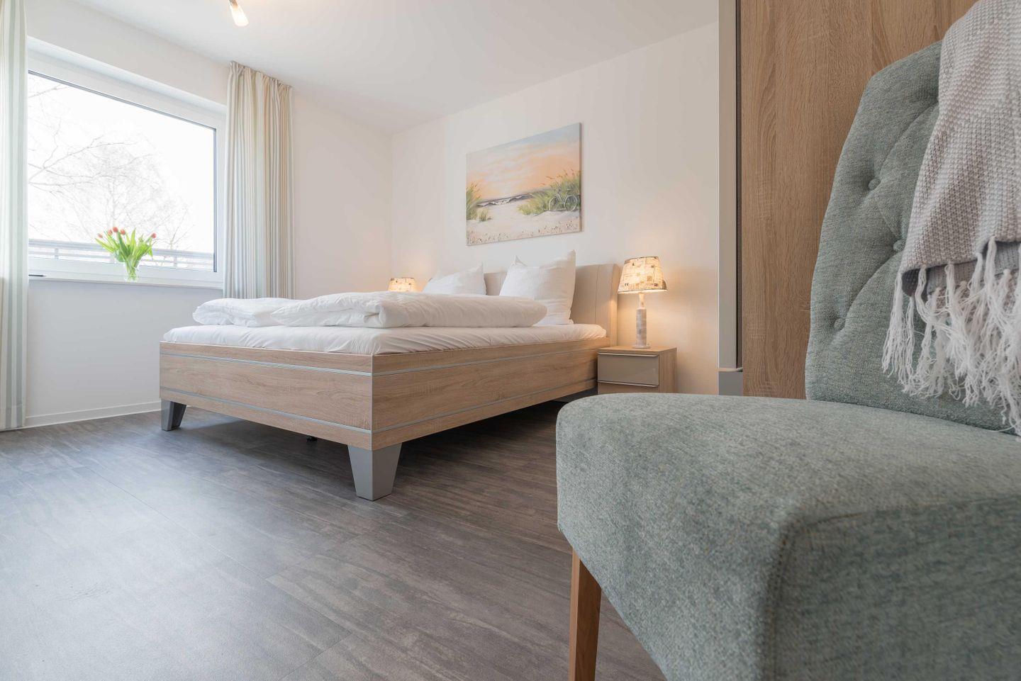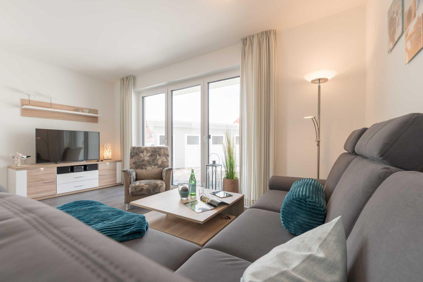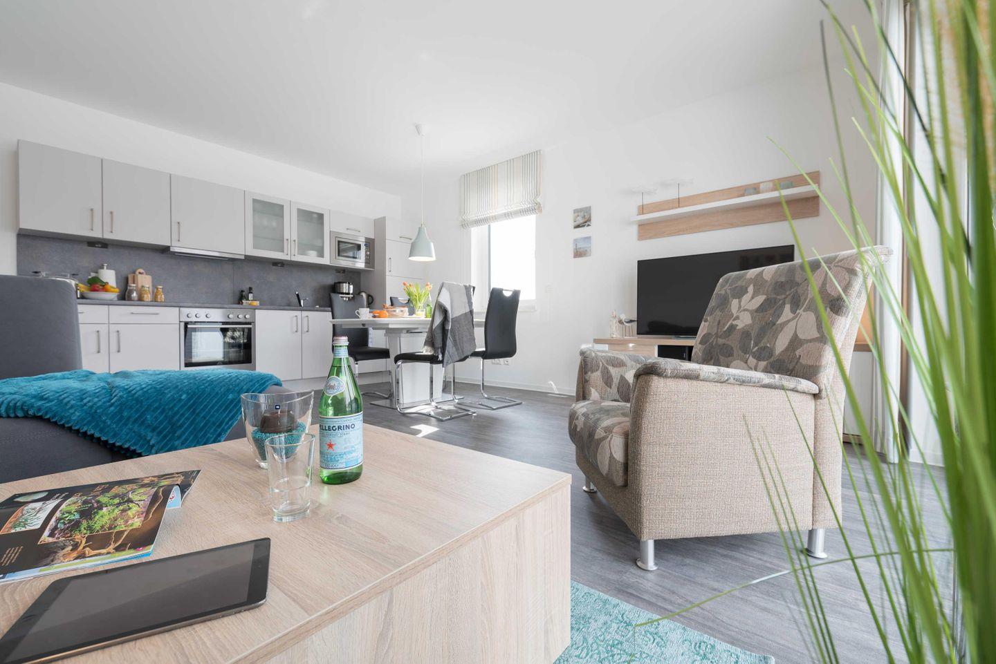 Die strandnahe Drei-Zimmer-Ferienwohnung in Südwest-Lage im maritimen Wohnstil