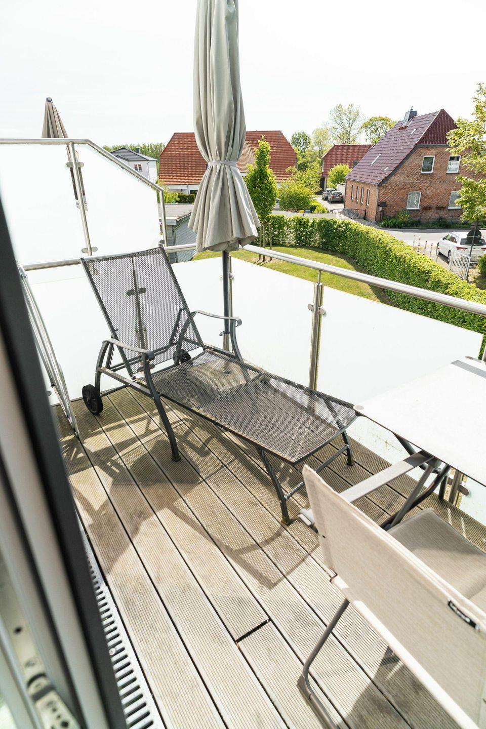 gelangen Sie auf den Balkon. Genießen Sie hier ein gemütliches Frühstück in