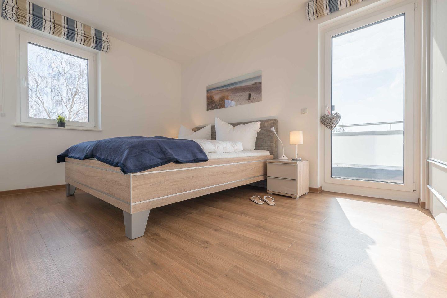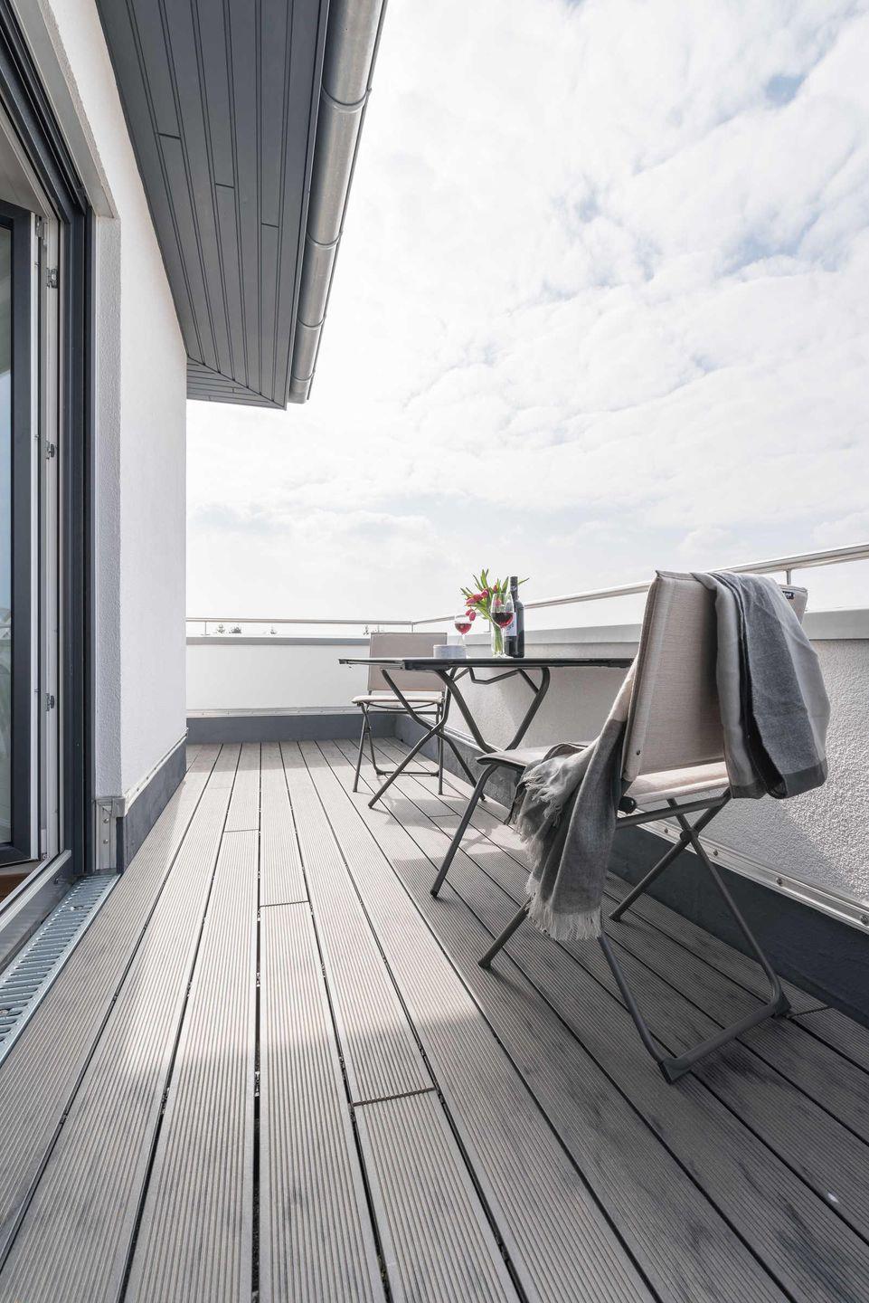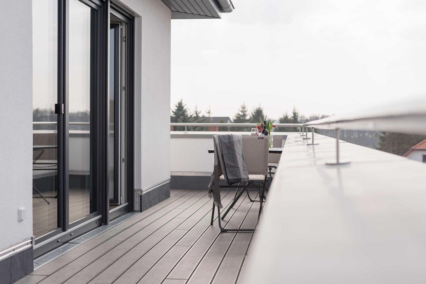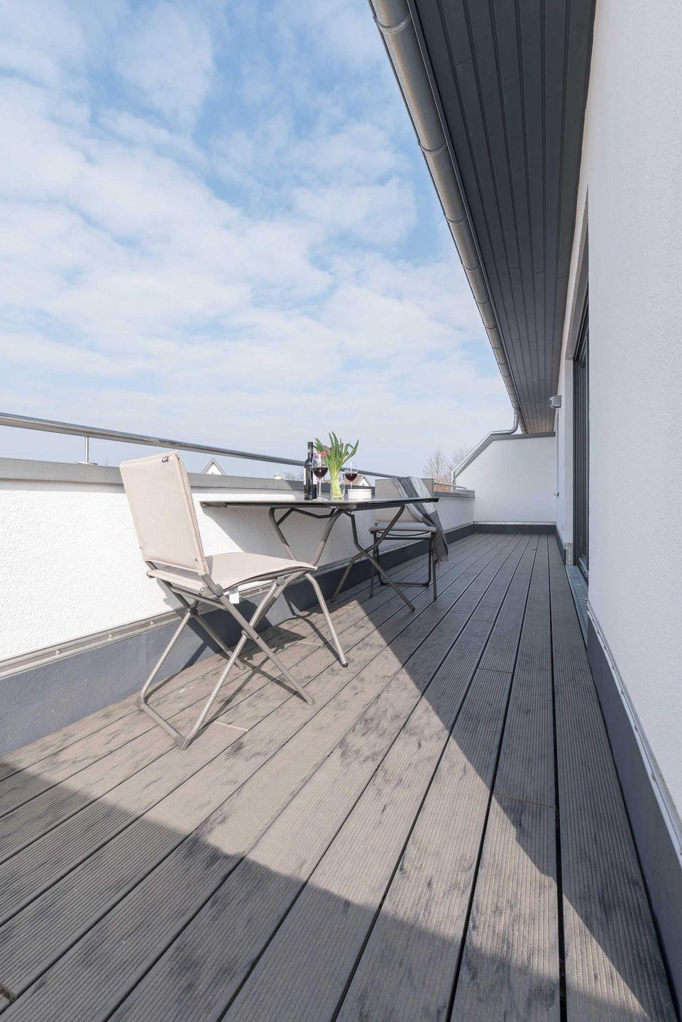 Moderne Penthouse-Ferienwohnung "Seeadlerhorst" mit Balkon und Dachterrasse nahe Ostseestrand.