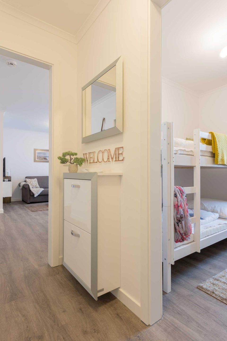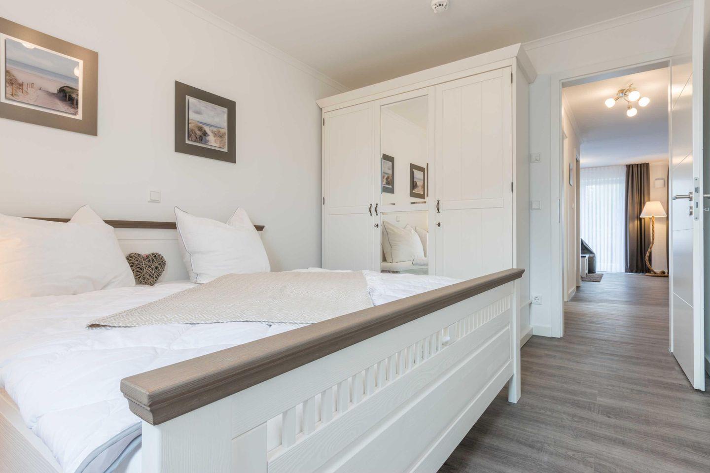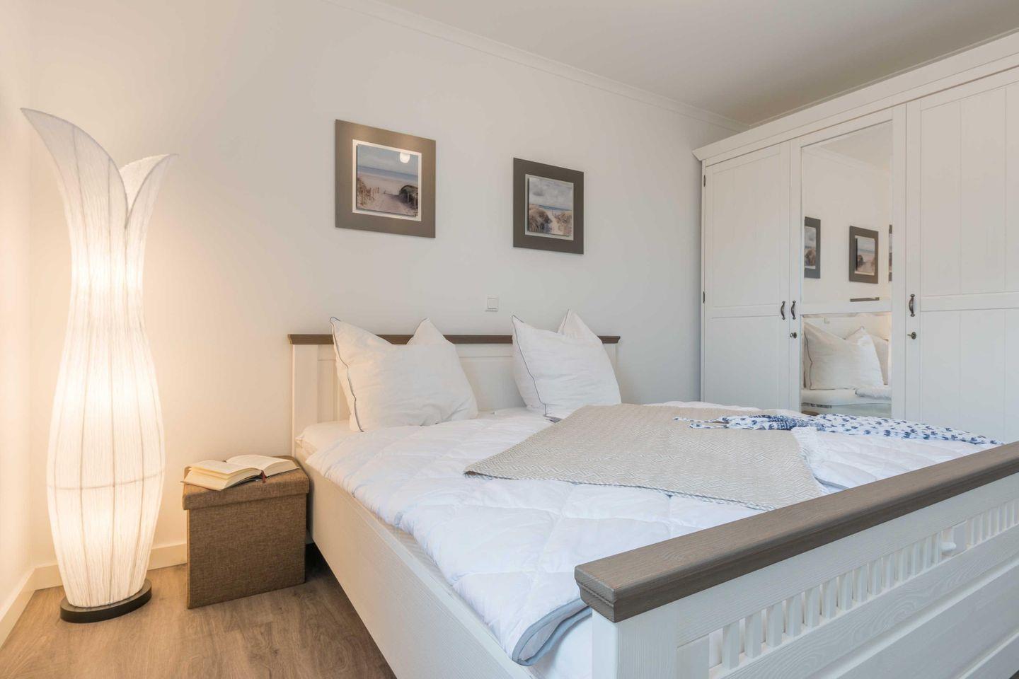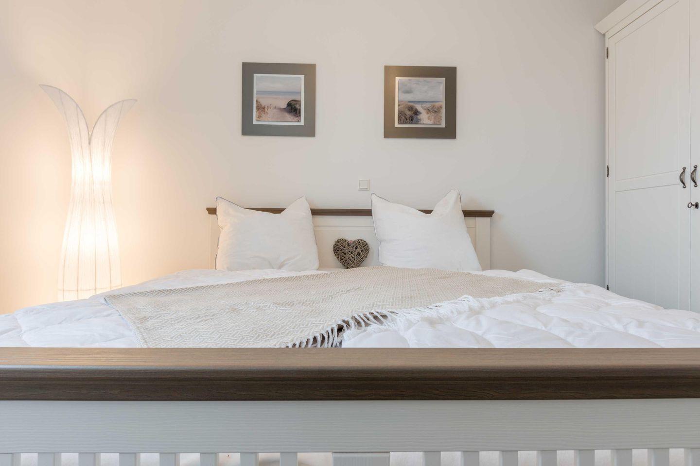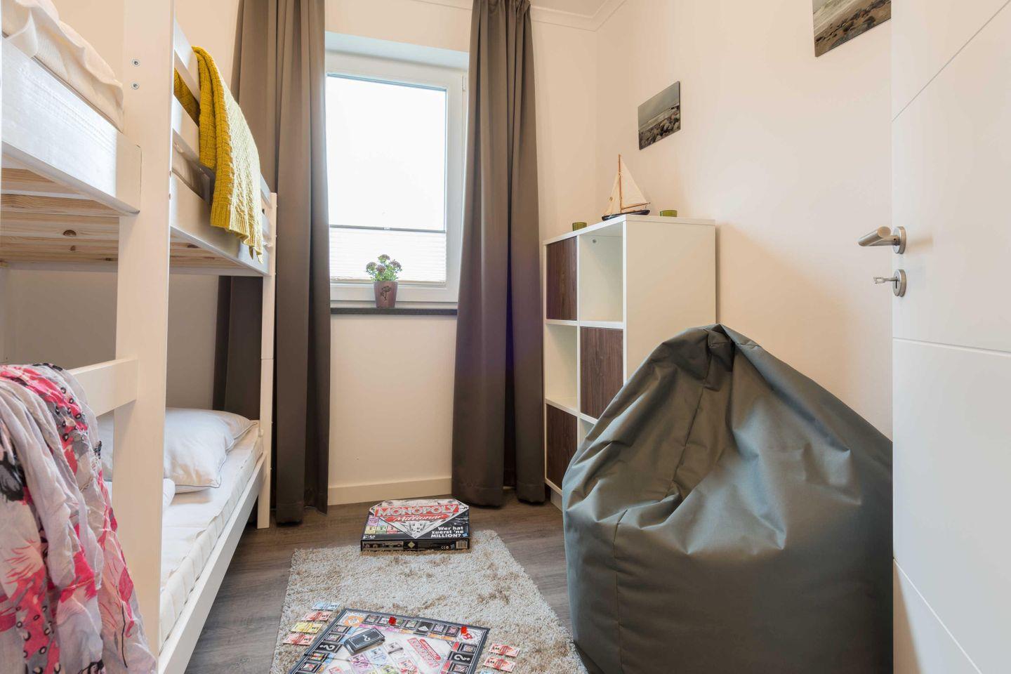 Das erste und größere Schlafzimmer ist mit einem komfortablen Bett (180x200 cm-bestehend aus zwei Matratzen 90x200 cm), einem geräumigen Kleiderschrank und einem Flat-TV ausgestattet. Im zweiten Schlafzimmer stehen ein Etagenbett (je 90x200 cm), ein kleiner Schrank mit Kinderbüchern und Spielesammlung sowie ein gemütlicher Sitzsack.