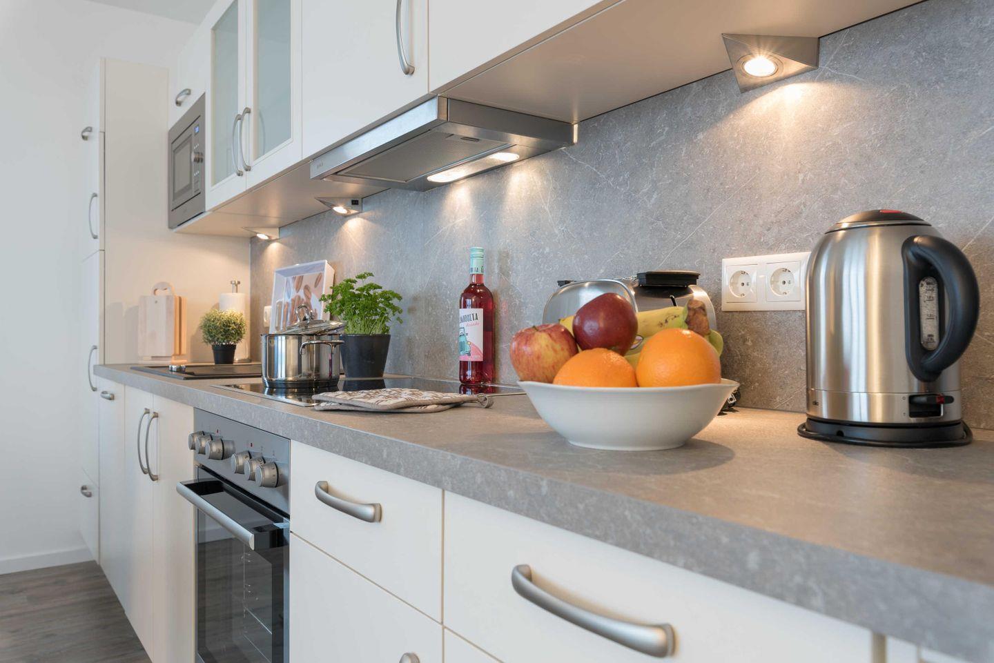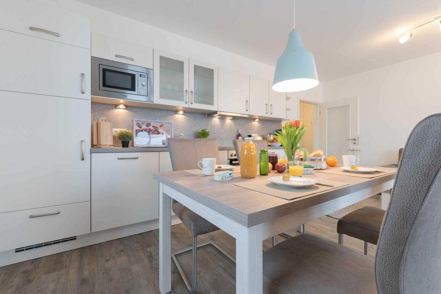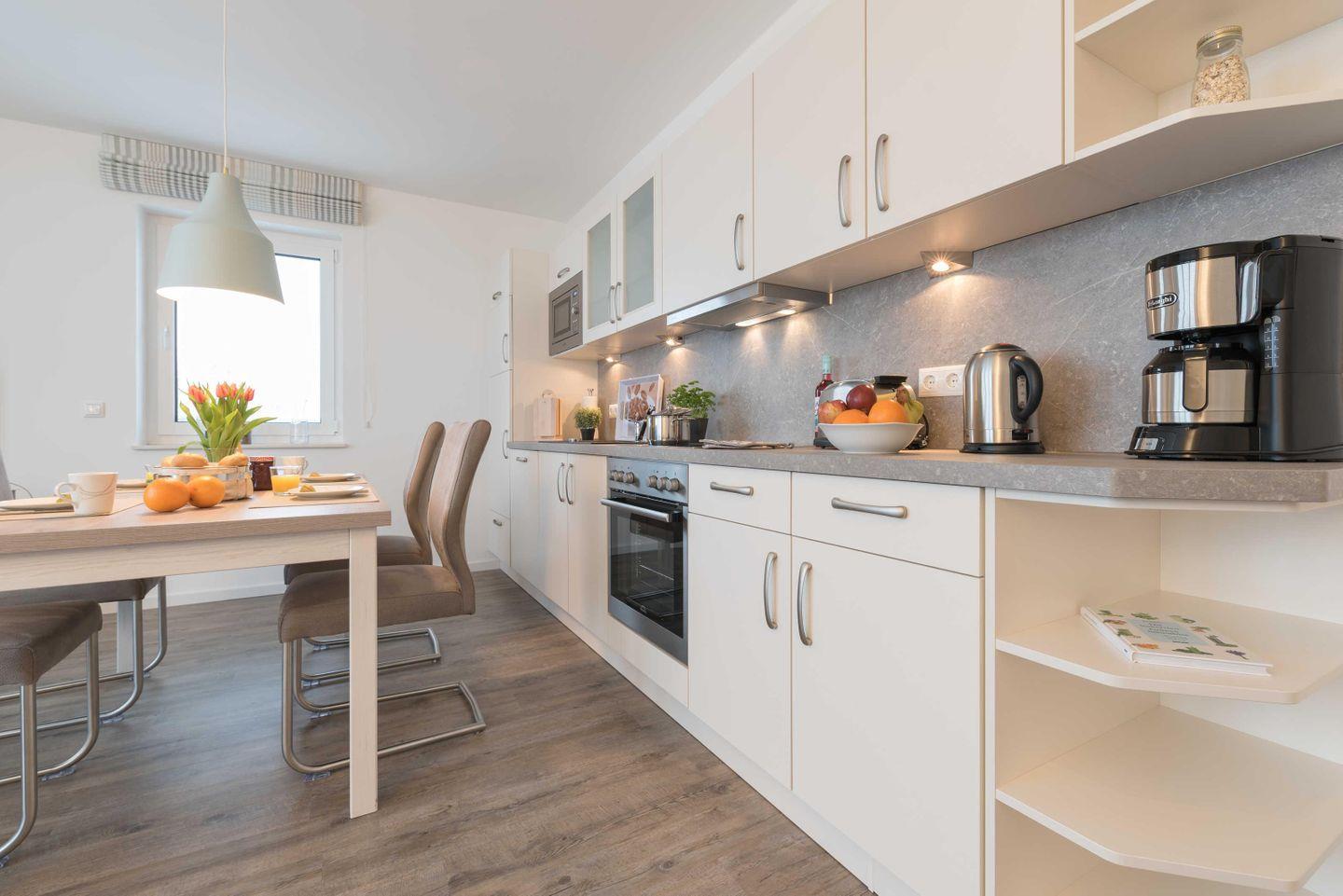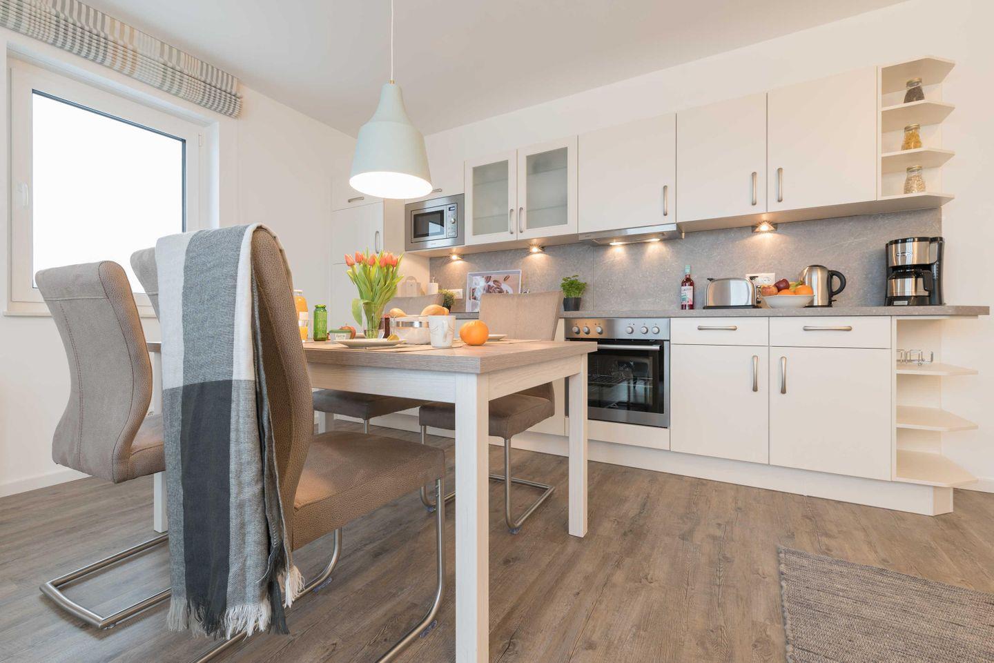 Die hochwertige, moderne Einbauküche verfügt über einen Geschirrspüler, einen