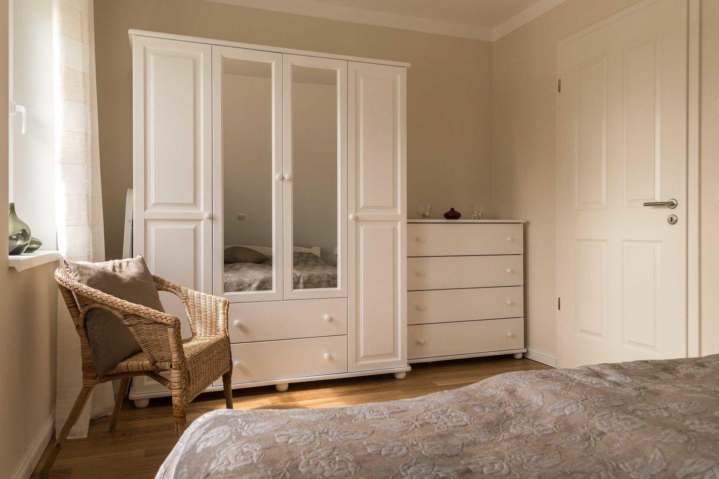 Eines davon hat ein untergeschobenes Rollbett. In den Kleiderschränken ist