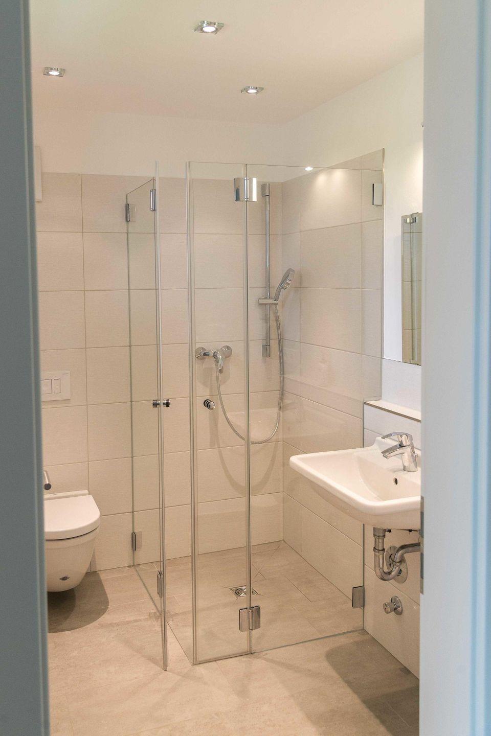 Das Ferienhaus verfügt über zwei Bäder mit einer jeweils verglasten Dusche,