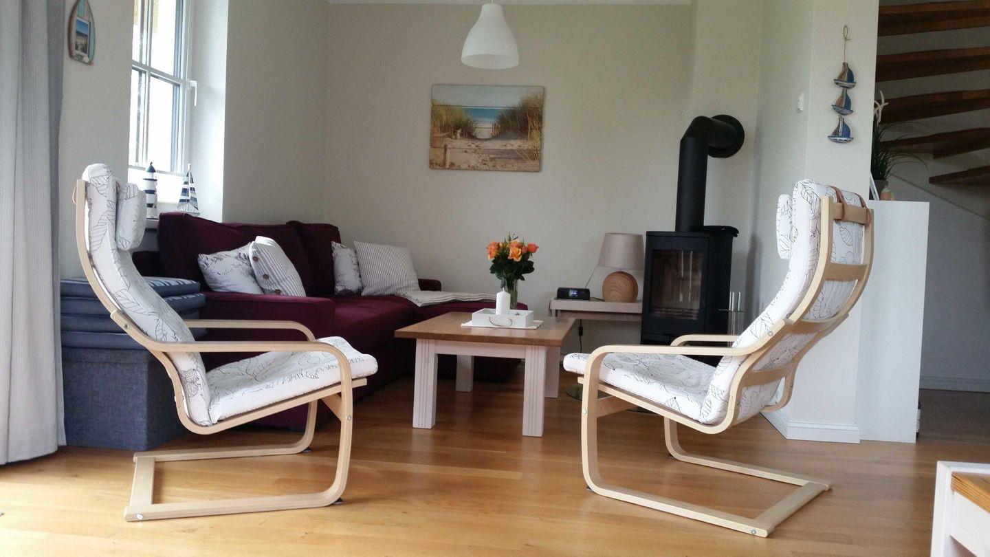 gemütliche Stunden lassen sich vor dem Kaminofen verleben (Kaminholz muss selbst