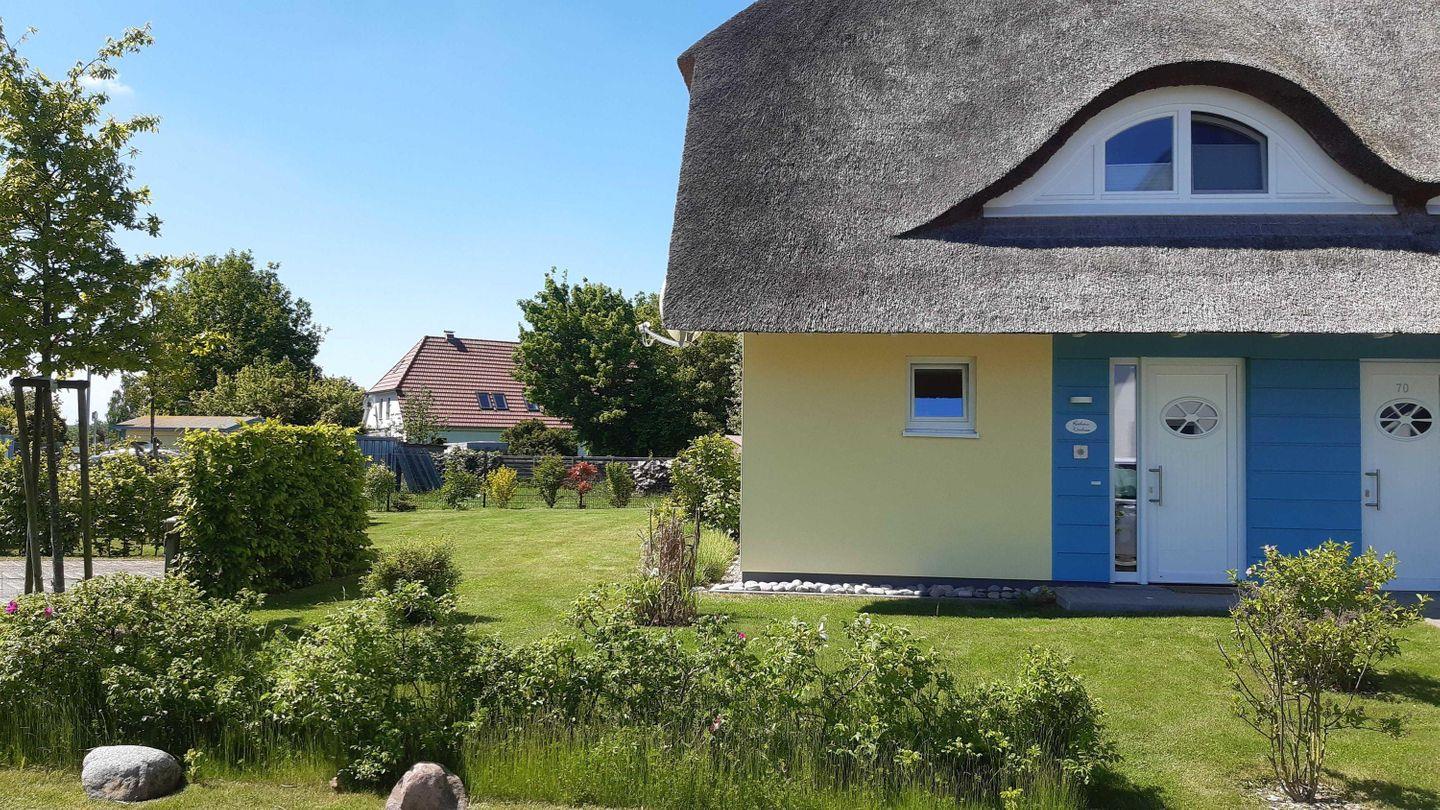 Das reetgedeckte Ferienhaus (Doppelhaushälfte), fußläufige Entfernung zur Ostsee