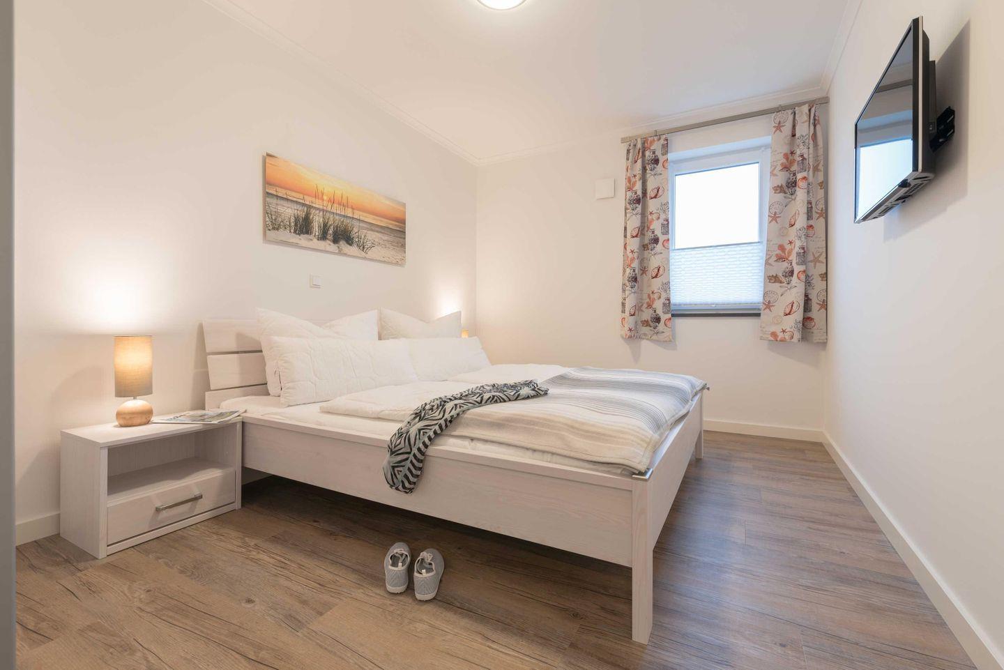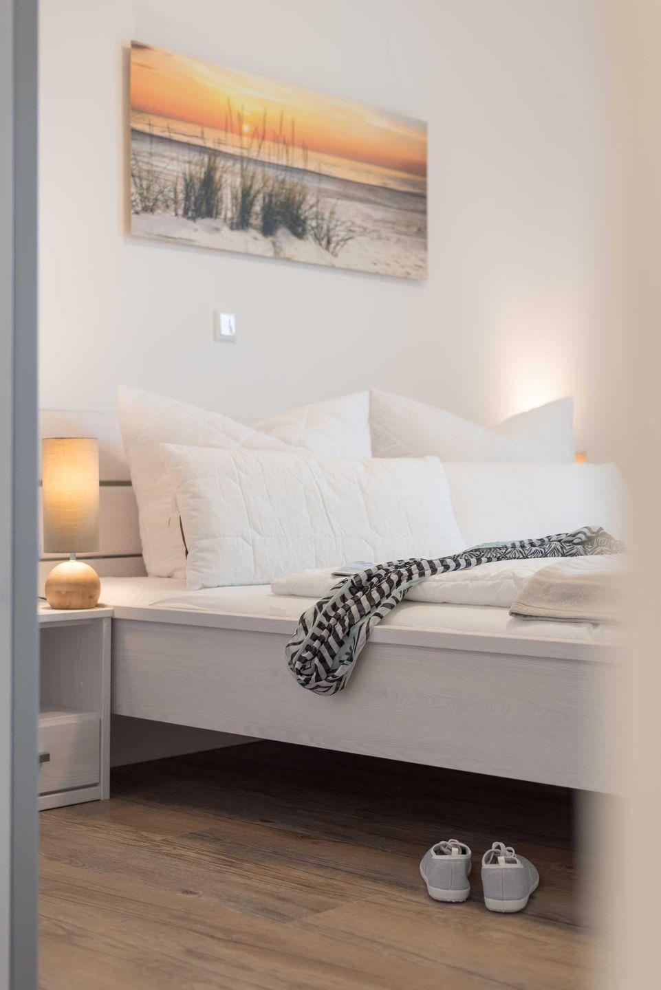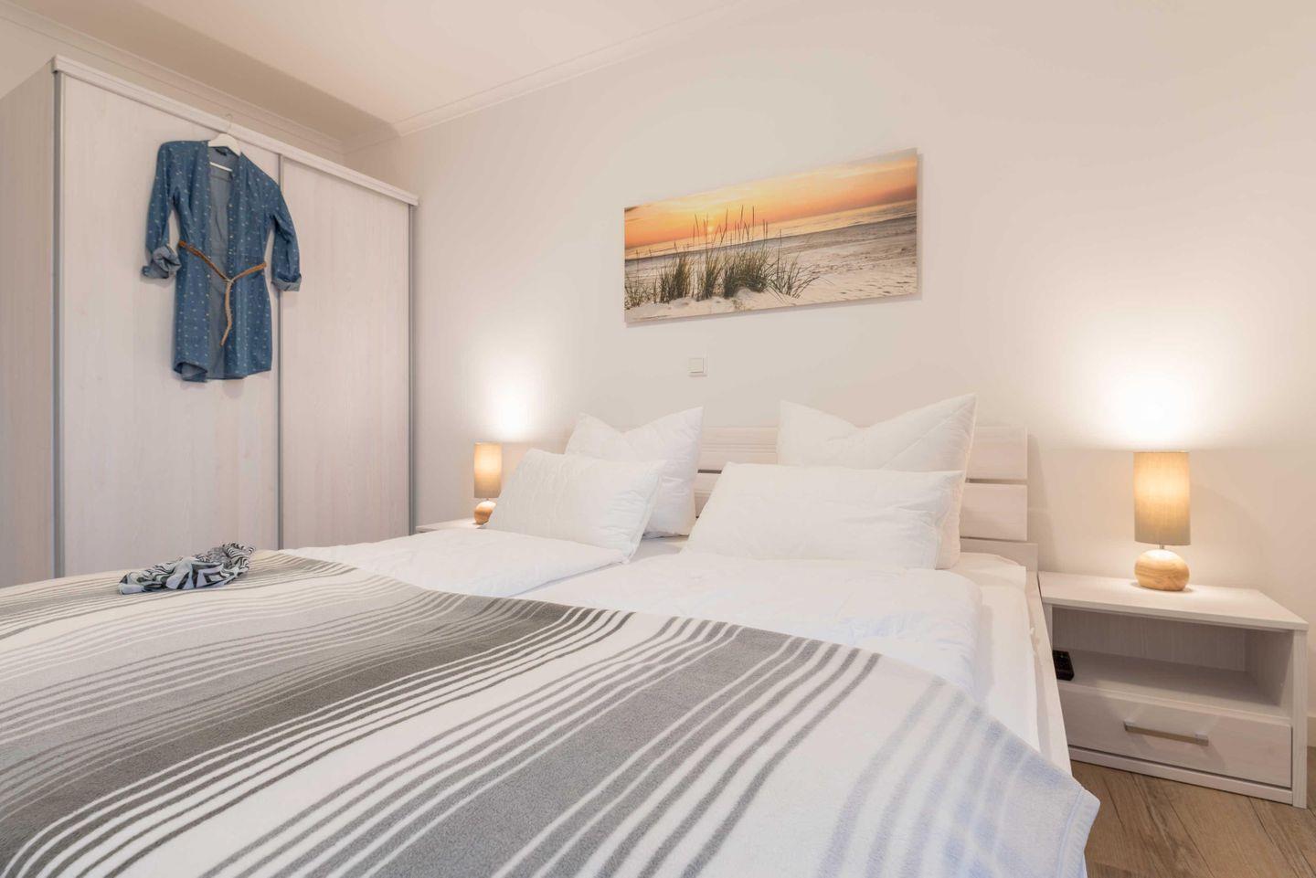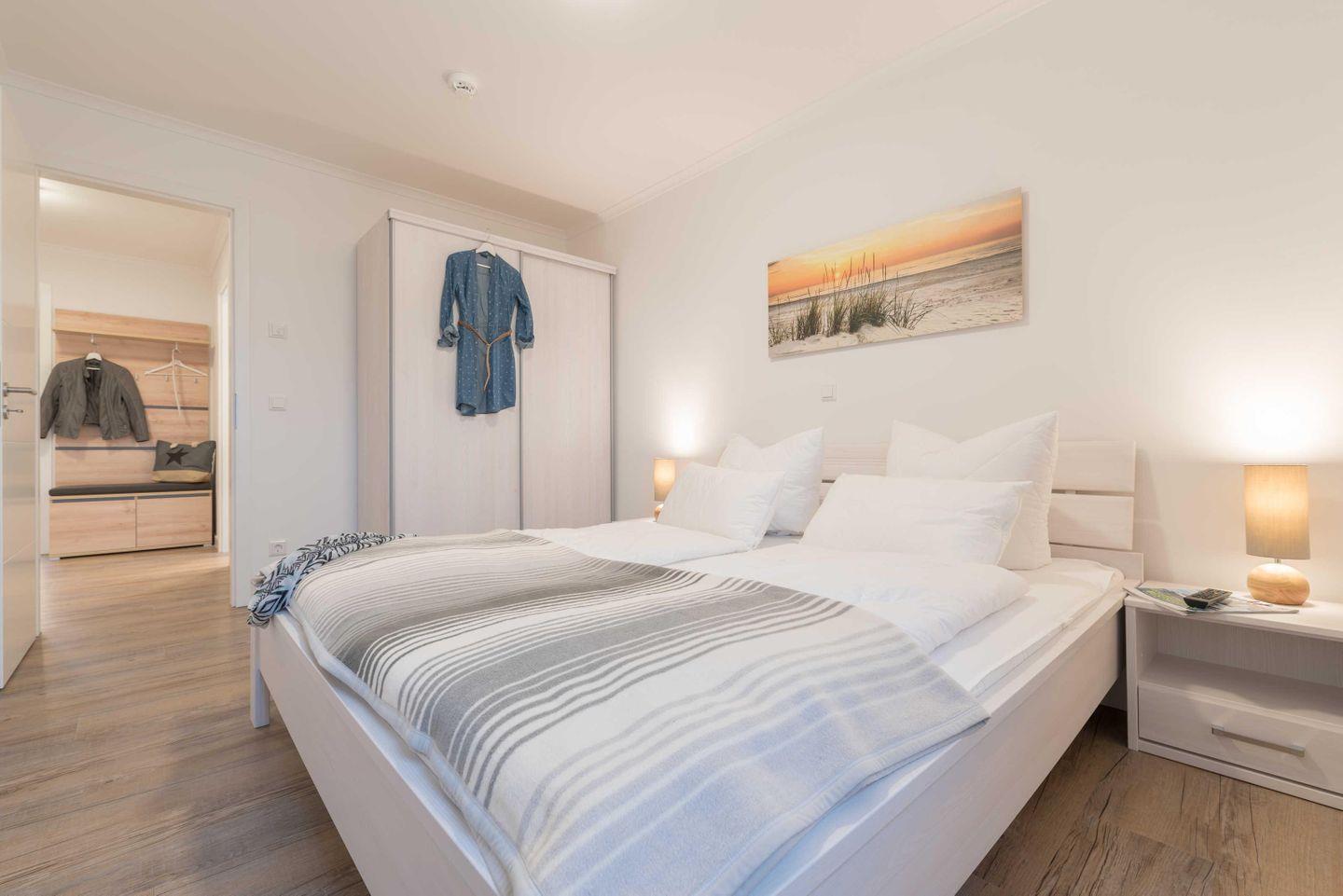 Schlafzimmer stehen ein Doppelbett (1,90 m x 2,00 m) und ein geräumiger