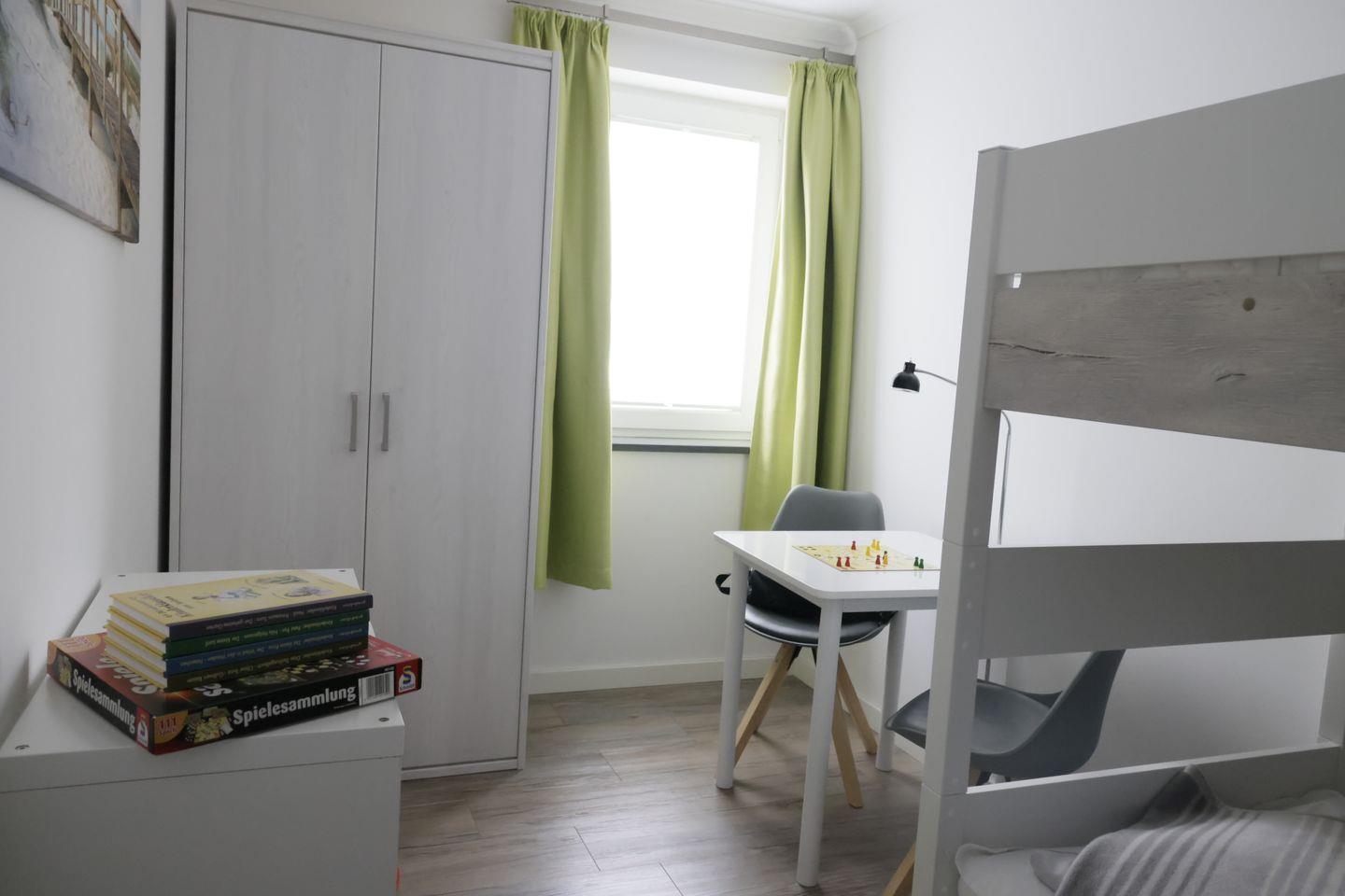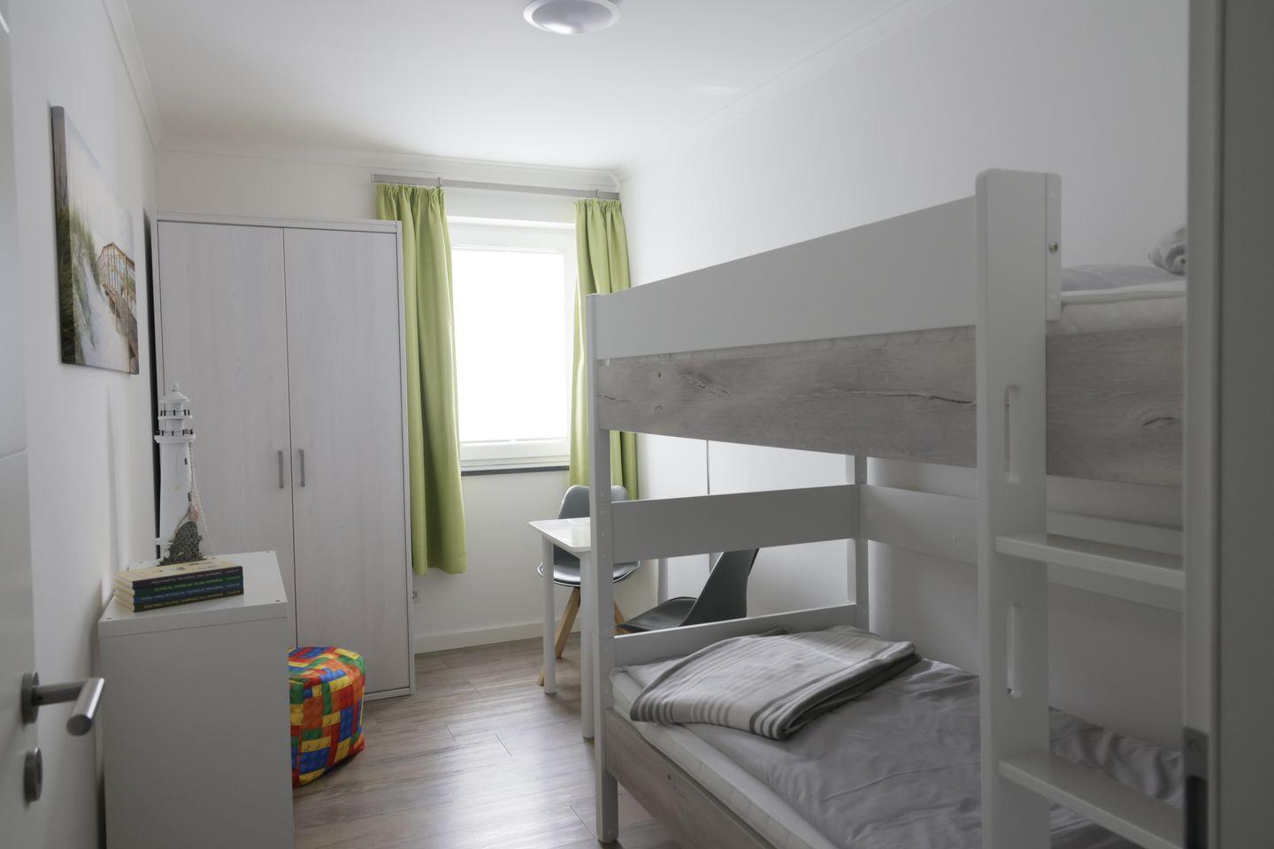 Kleiderschrank. Im zweiten Schlafzimmer befinden sich ein Etagenbett mit (0,90 m x 2,00 m,