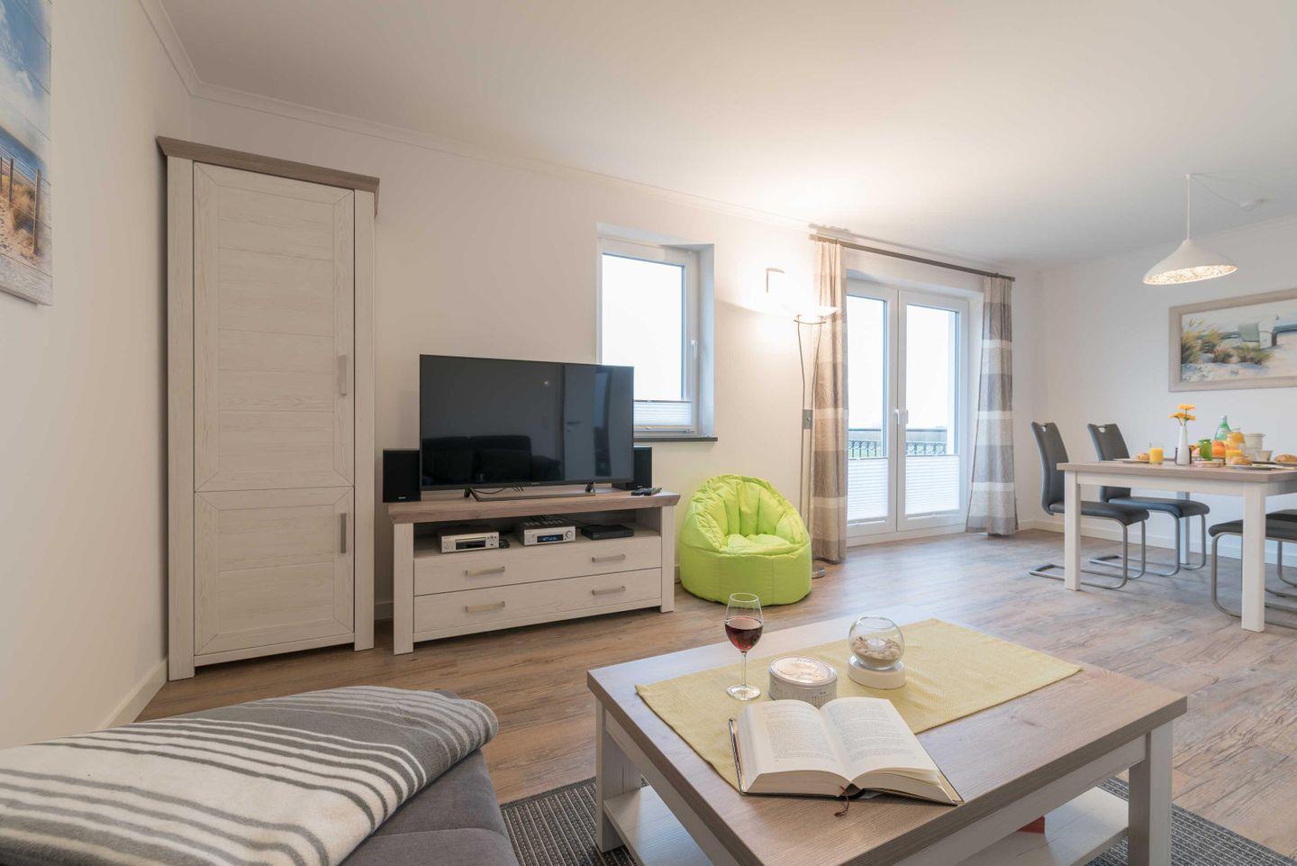 Die im maritimen Stil eingerichtete 3-Zimmer Wohnung besteht aus großzügigem