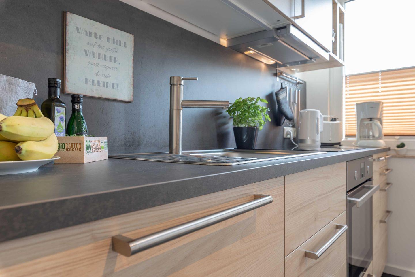 Wasserkocher, Mikrowelle, Cerankochfeld und Backofen. So lässt es sich frisch