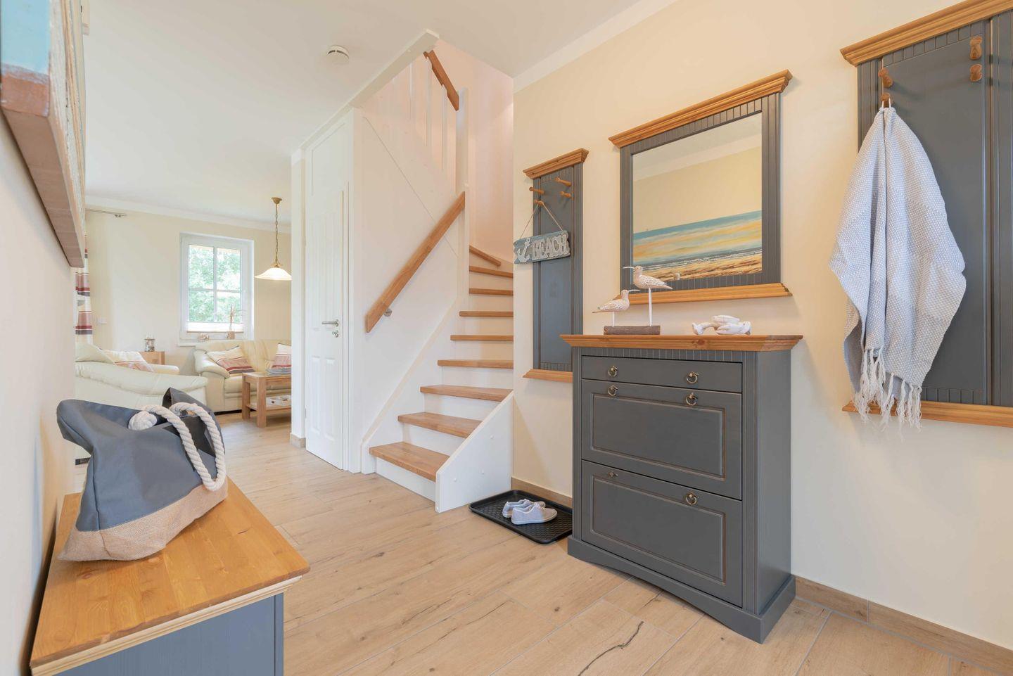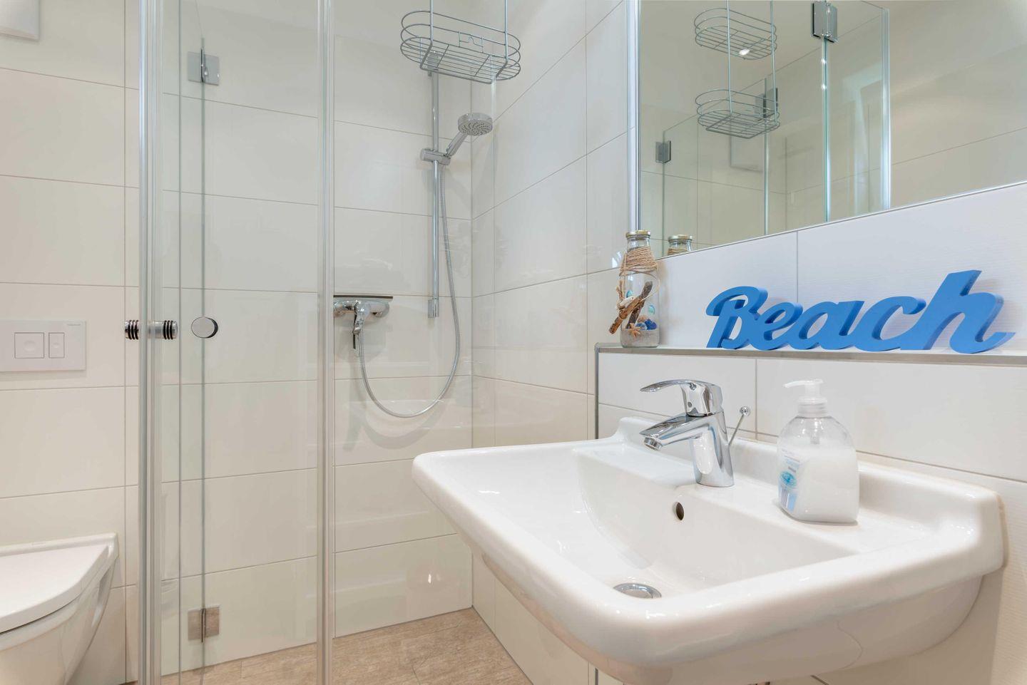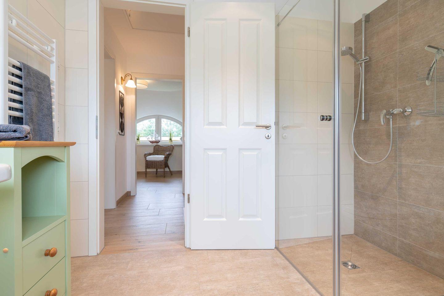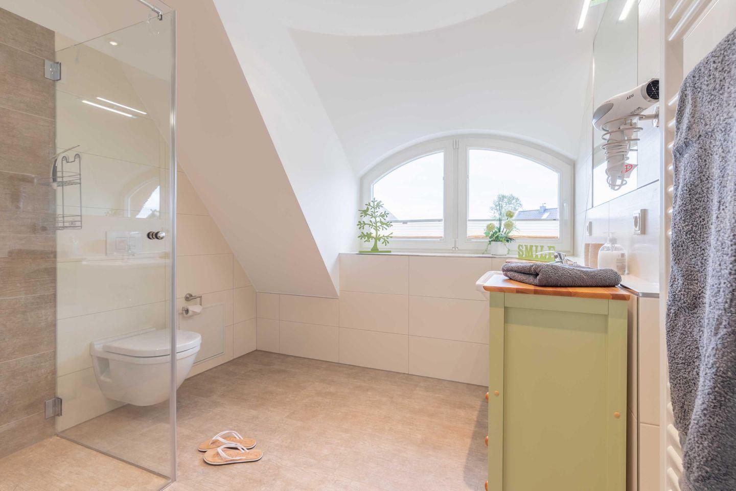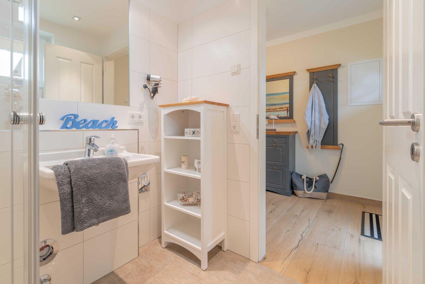 Im Erdgeschoss befindet sich das erste Bad inkl. Dusche, Föhn und