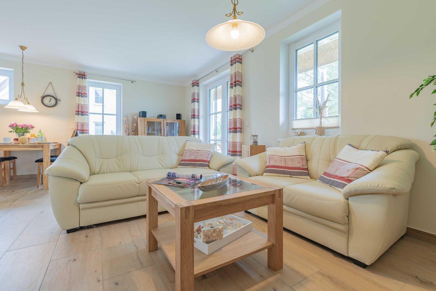 Die gemütliche Couchecke im Wohnbereich eignet sich ideal zum entspannen nach