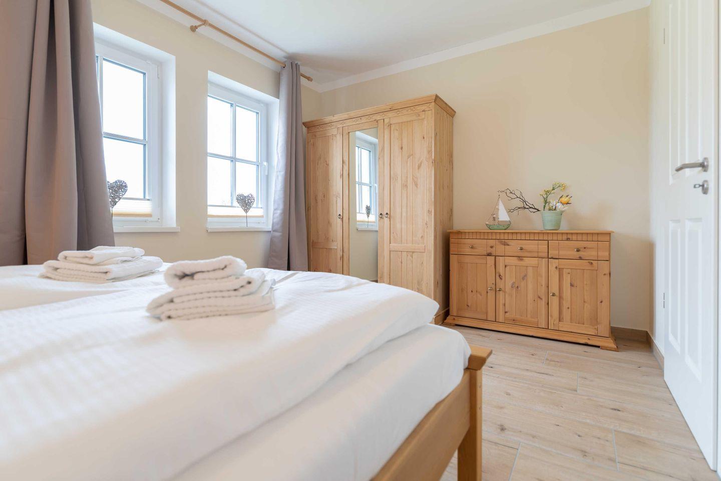 Kommoden, sowie zwei Doppelbetten (1,60 x 2,00 m) mit einer großen Matratze