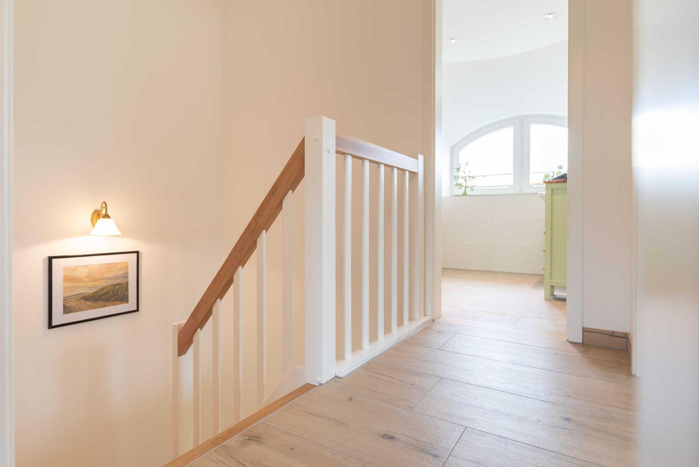 Im Obergeschoss befindet sich das zweite großzügig und hell angelegte Badezimmer