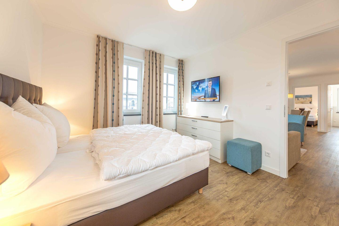 zweiten Schlafzimmer befindet sich ein 1,60 x 2,00 m großes Boxspringbett