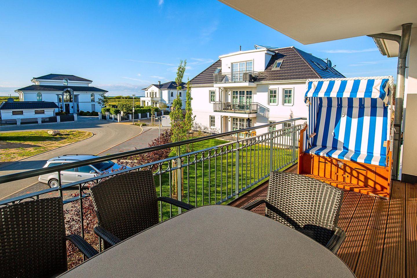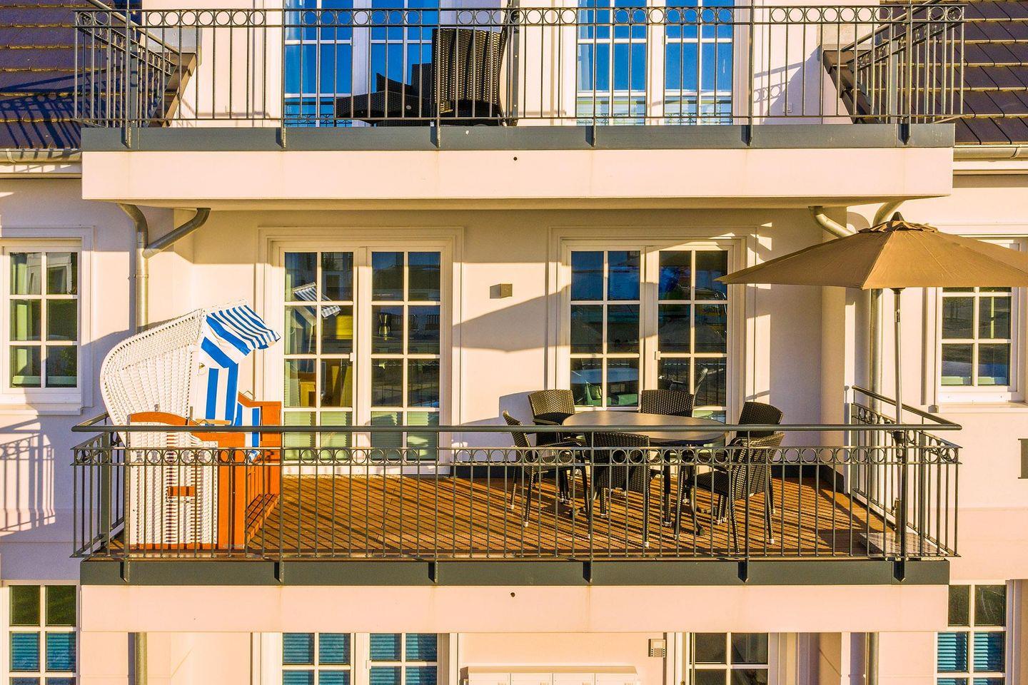 maritimen Strandkorb können Sie auf dem geschützten großen Balkon bei schönem