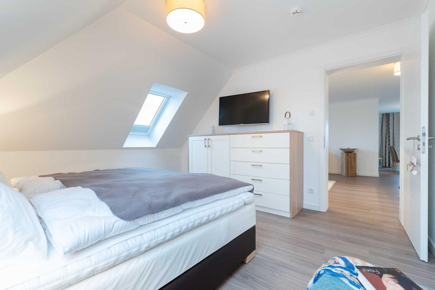 Die beiden Schlafzimmer sind jeweils mit hochwertigen Boxspringbetten als