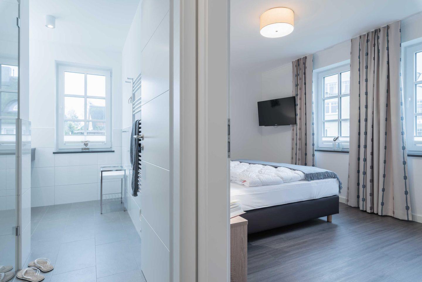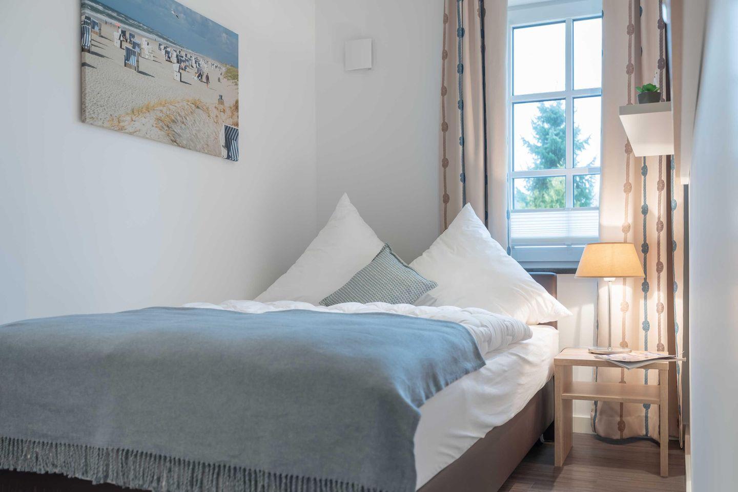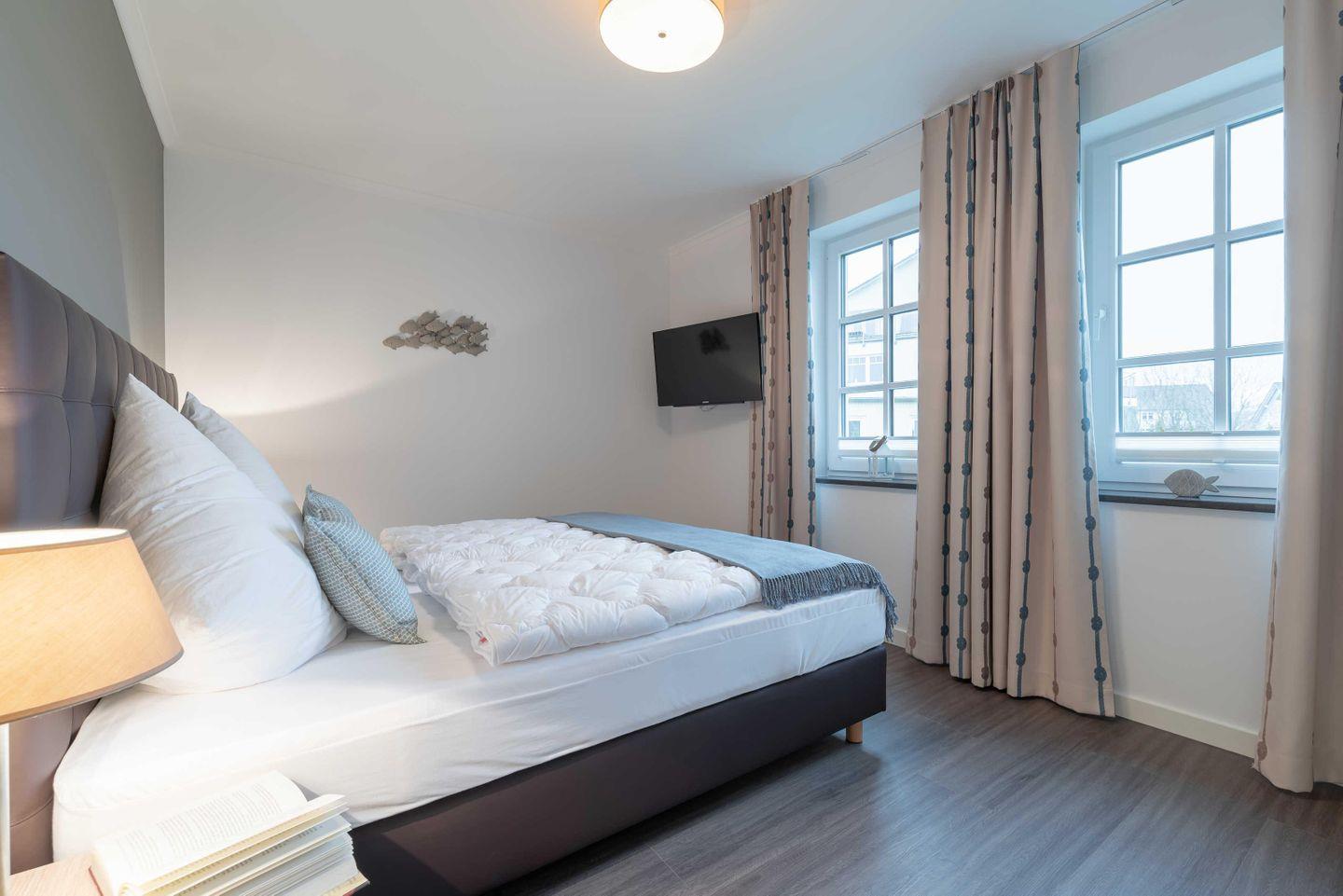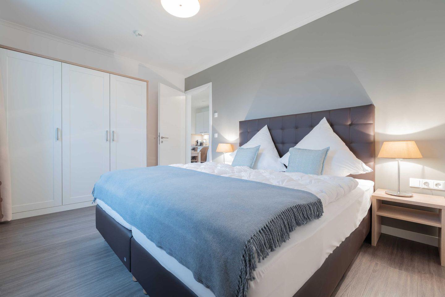 größeren Schlafzimmer empfangen Sie ein Boxspringbett (1,80 x 2,00 m), ein
