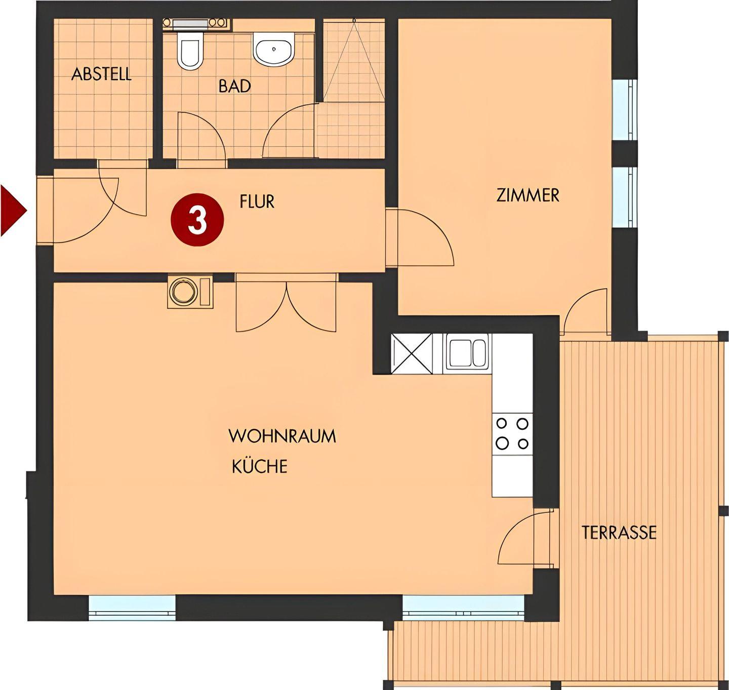 Wohnzimmer aus haben Sie möglichkeit die Außenterrasse zu betreten. Bei schönem