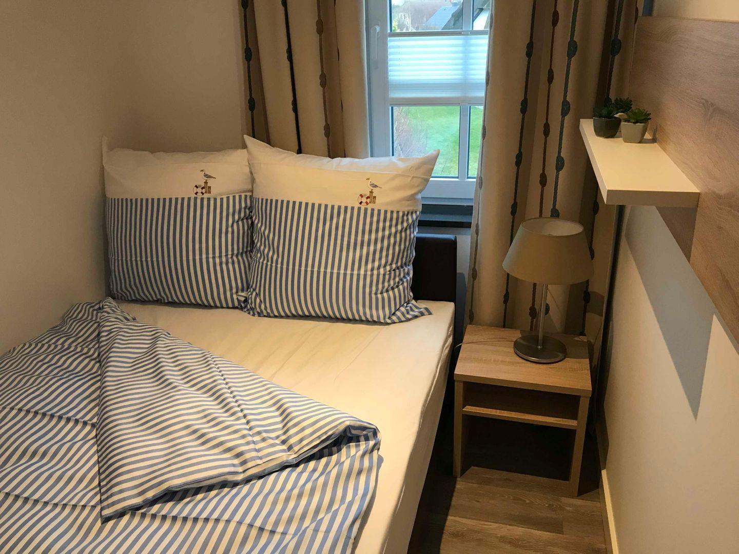 2 getrennten Matratzen) und einem geräumigen Kleiderschrank ausgestattet. Im