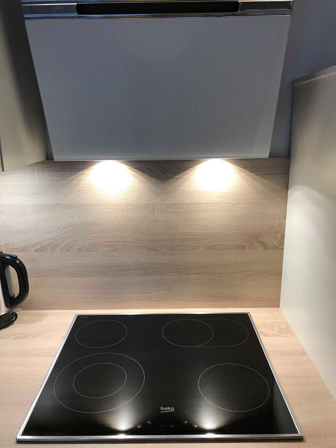 Küchenwaage, 4-Platten-Glaskeramikkochfeld und Kühlschrank inklusive
