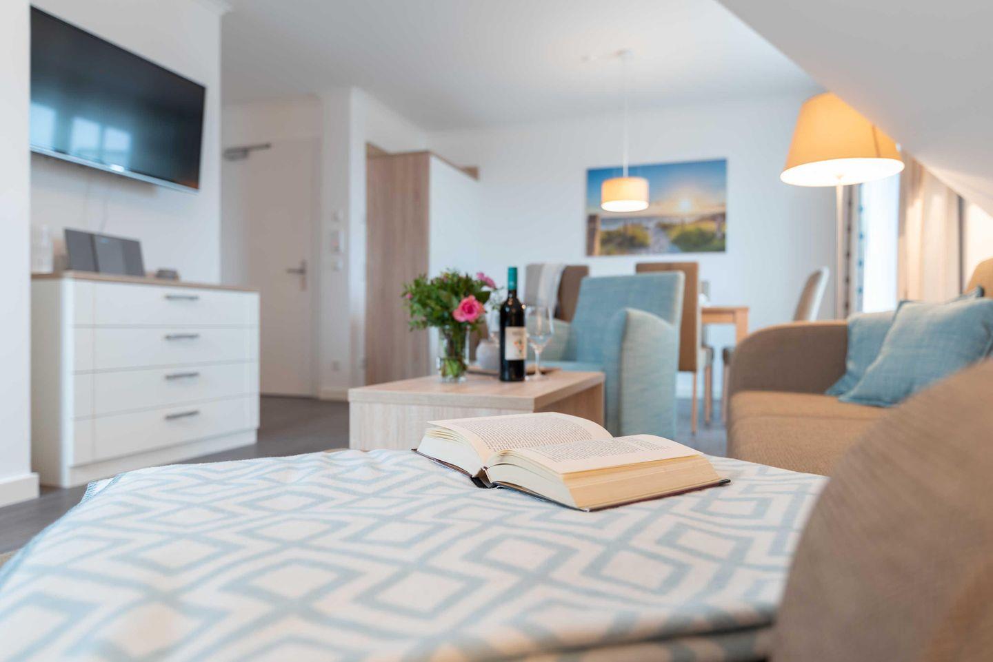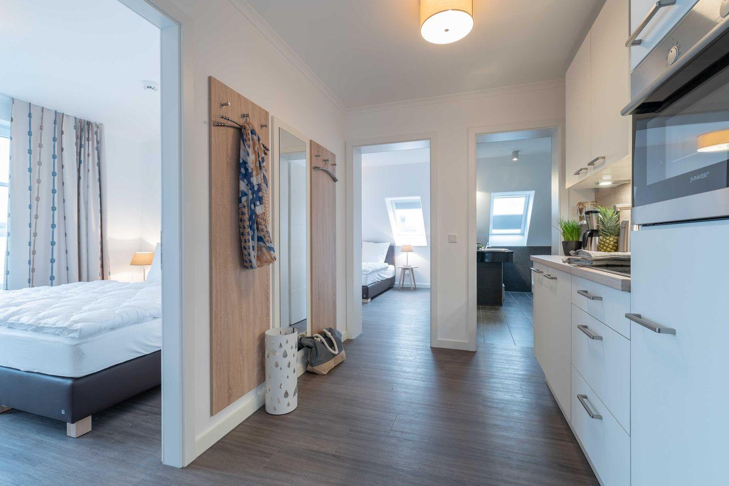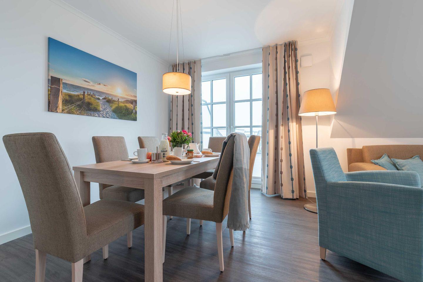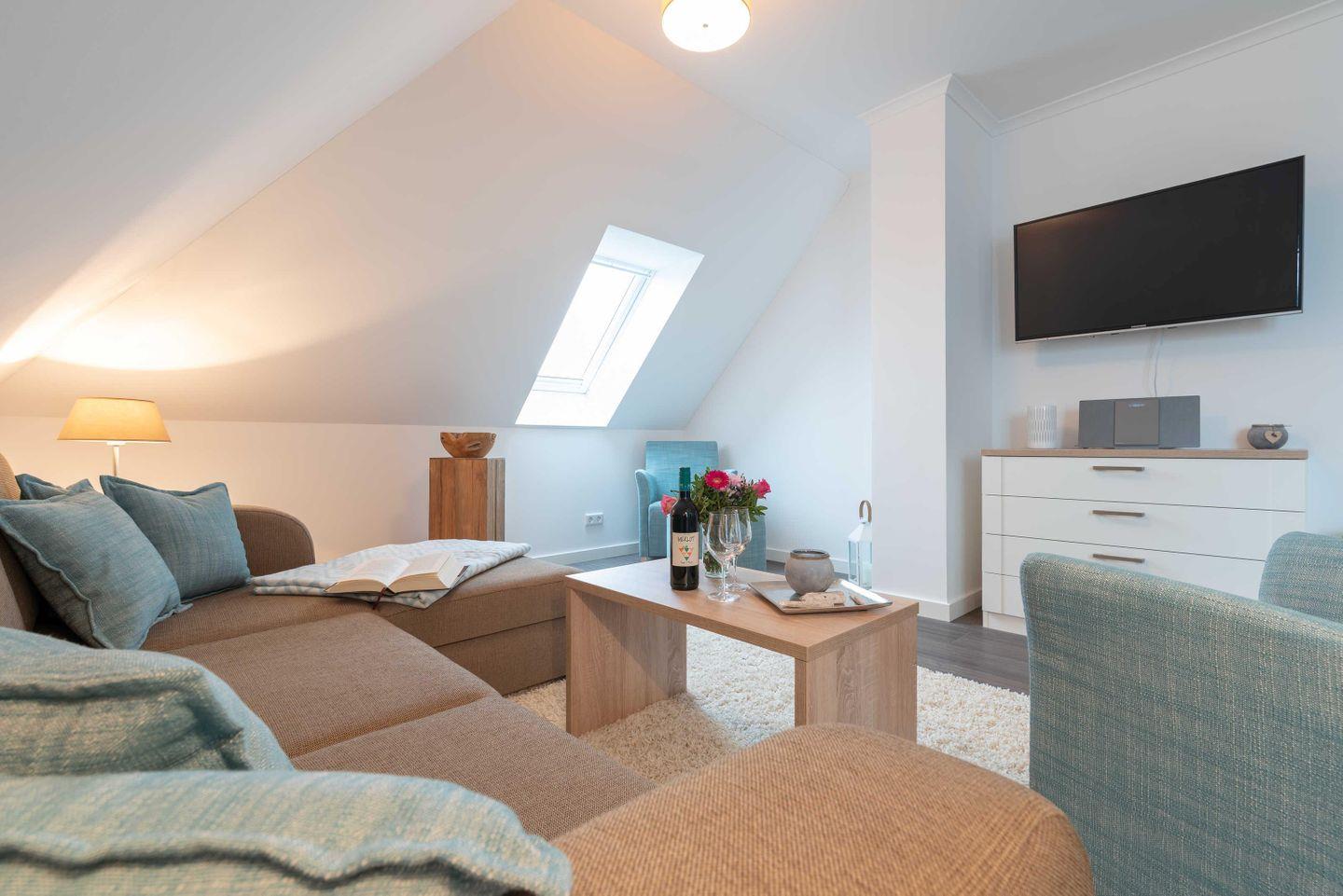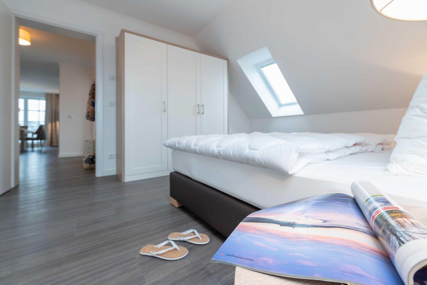Die große Dachgeschosswohnung mit Meerblick und zwei Balkonen ist das perfekte Urlaubsdomizil für Gruppen mit bis zu vier Erwachsenen und zwei Kindern (bis 12 Jahre). Ob mit Freunden oder der Familie – in diesem exklusiv und modern eingerichteten Drei-Zimmer-Apartment ist Entspannung und Erholung vorprogrammiert.