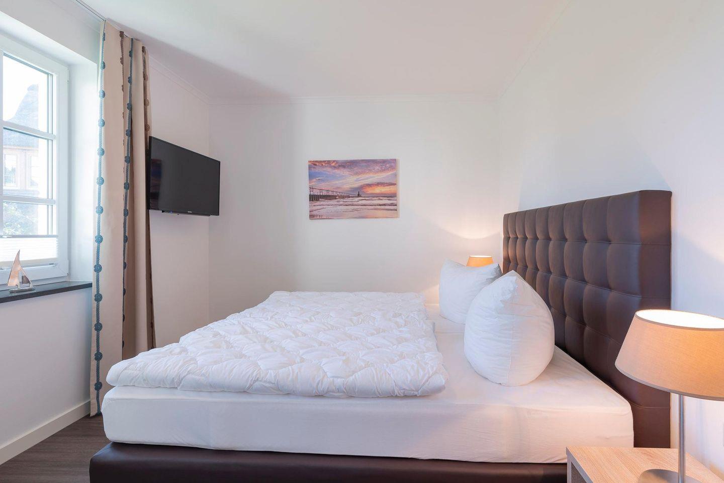 Die zwei Schlafzimmer sind mit bequemen Boxspringbetten und ausreichend Stauraum