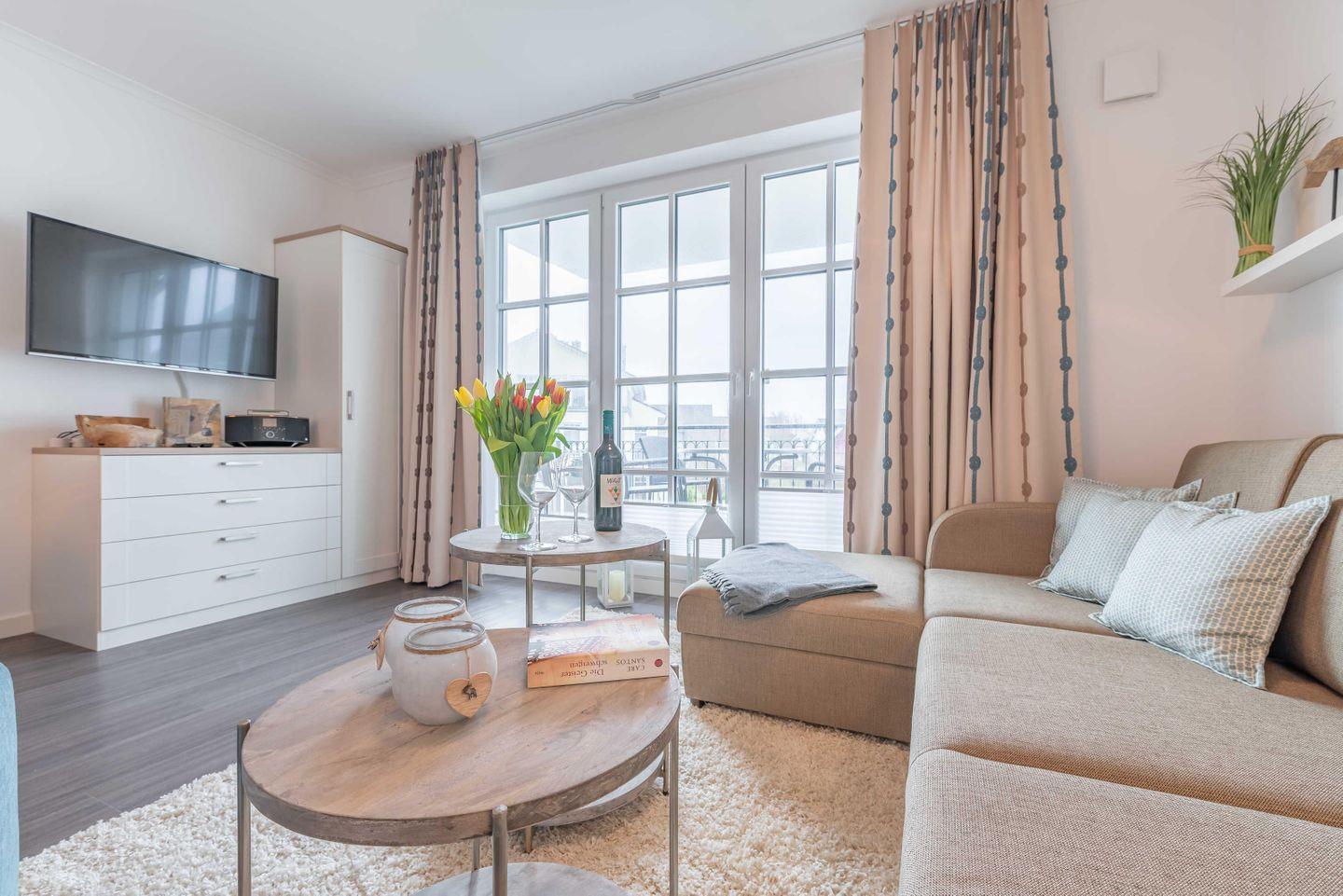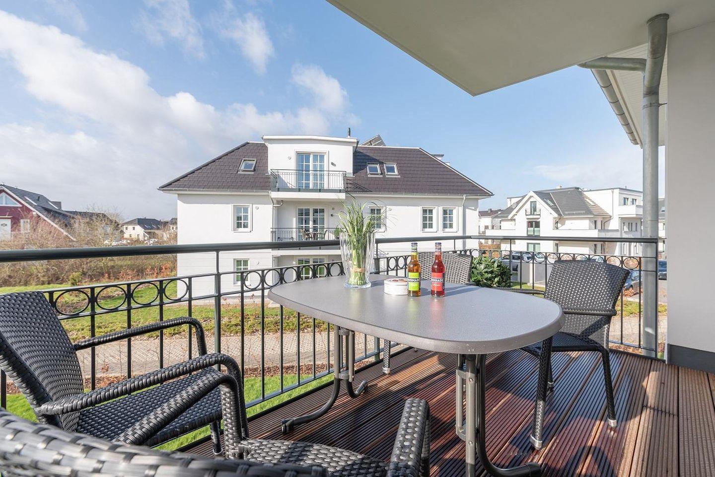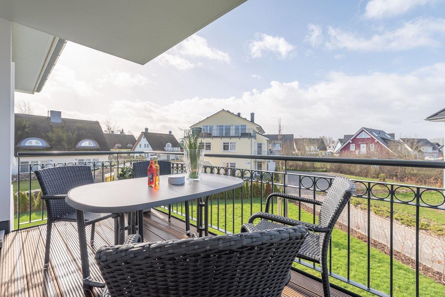 Gemütliche Ferienwohnung mit Balkon und eingeschränktem Meerblick in Börgerende, nahe Ostseestrand.