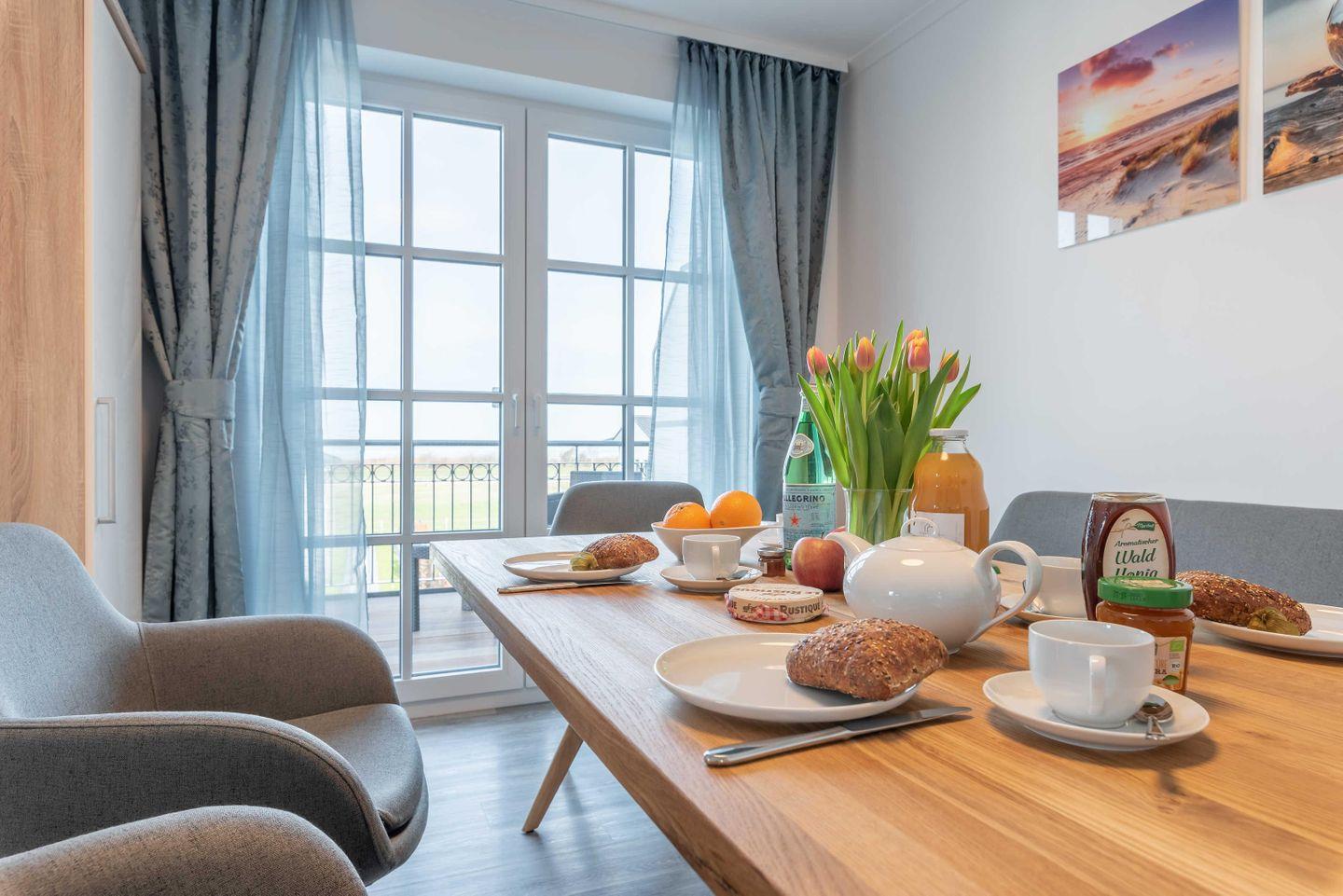 Moderne Ferienwohnung mit Balkon und eingeschränktem Meerblick nahe Strand und Restaurant in Börgerende.