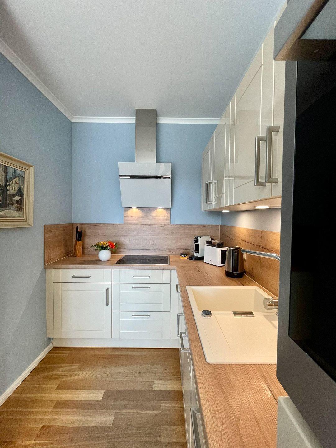 Cerankochfeld, eine Mikrowelle, einen Toaster, eine Filterkaffeemaschine, eine