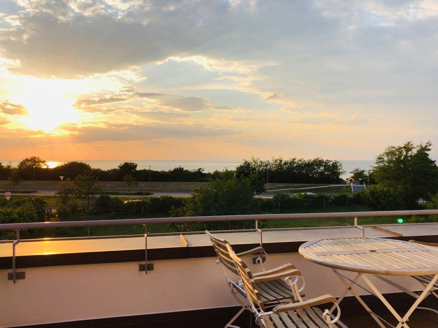 traumhafte Sonnenuntergänge über der Ostsee bei einem kühlen Glas Wein.