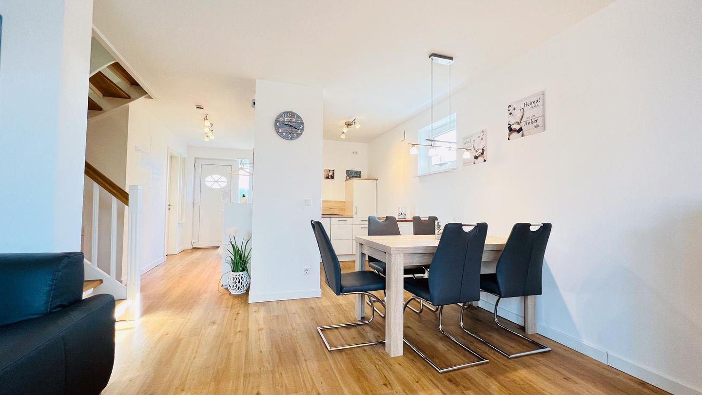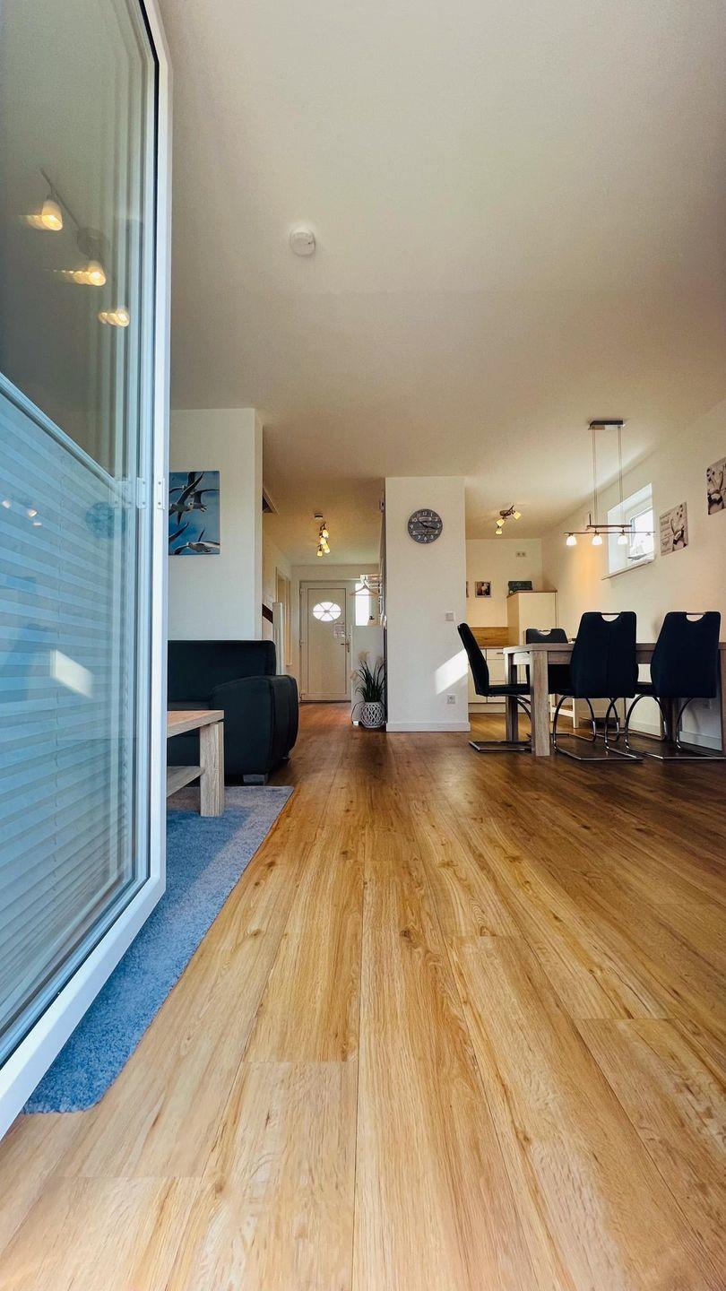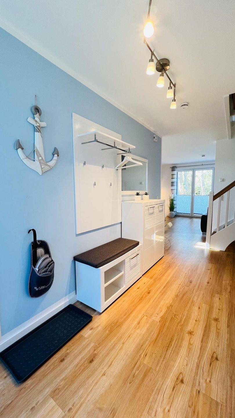 Das Haus wurde im Jahr 2019 in massiver Bauweise errichtet und erstreckt sich über drei Etagen inkl. Fußbodenheizung. Die helle und freundliche im maritimen Stil eingerichtete Haushälfte bietet ausreichend Platz für max. sechs Personen.