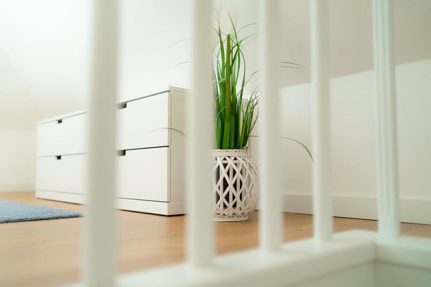 Im ersten Obergeschoss befindet sich das zweite großzügig und hell angelegte Badezimmer, ebenfalls mit ebenerdiger Dusche. Zwei Schlafzimmer mit Doppelbetten (1,80 x 2,00 m / mit Einzelmatratzen) sorgen für süße Träume. Zum besseren Einschlafen kann in beiden Räumen auf den installierten Flat-TV Fernsehen geschaut werden. Genügend Stauraum bieten geräumige Kleiderschränke und Kommoden. Im zweiten Obergeschoss liegt unsere wunderschöne Dachgalerie. Hier gibt es zwei weitere Schlafmöglichkeiten (Einzelbetten).