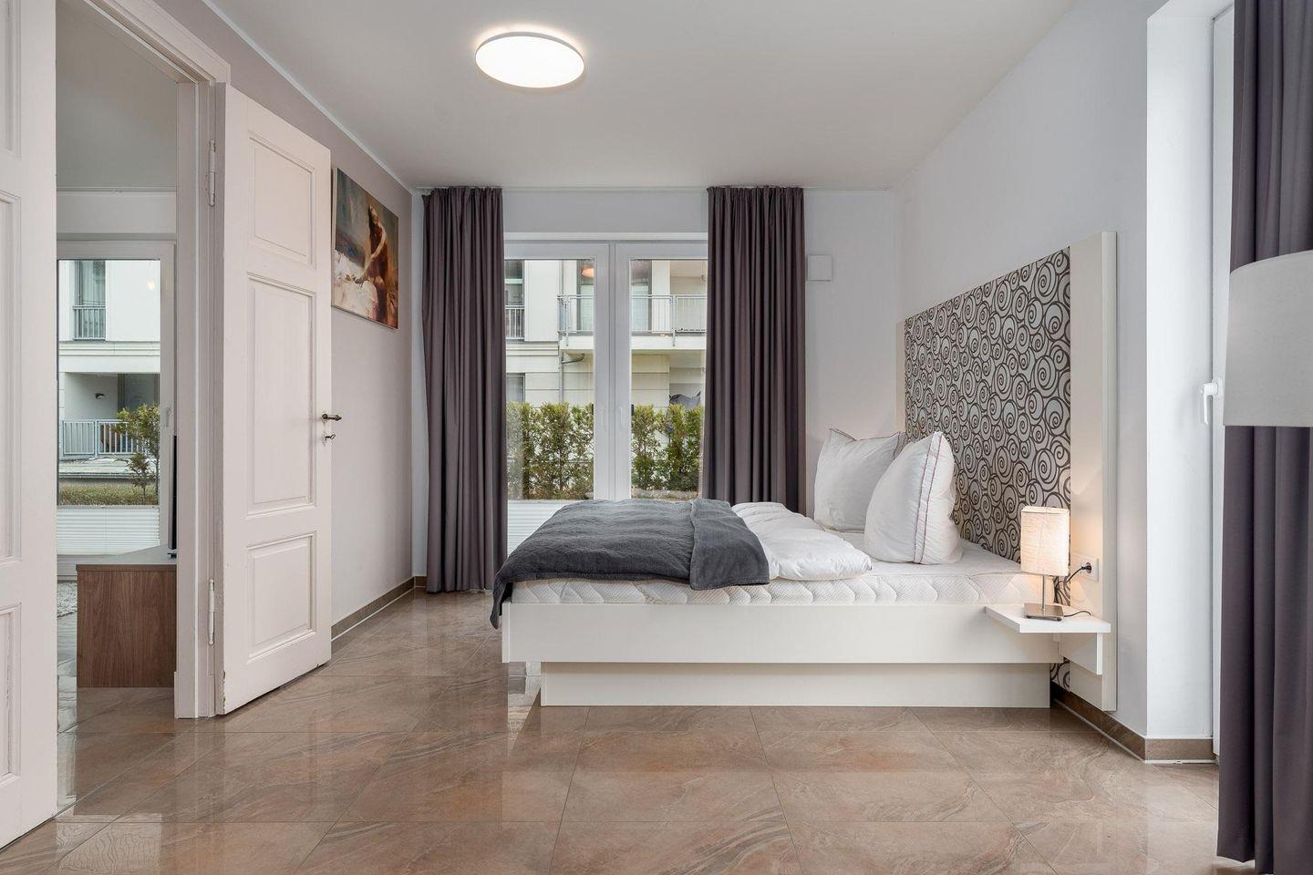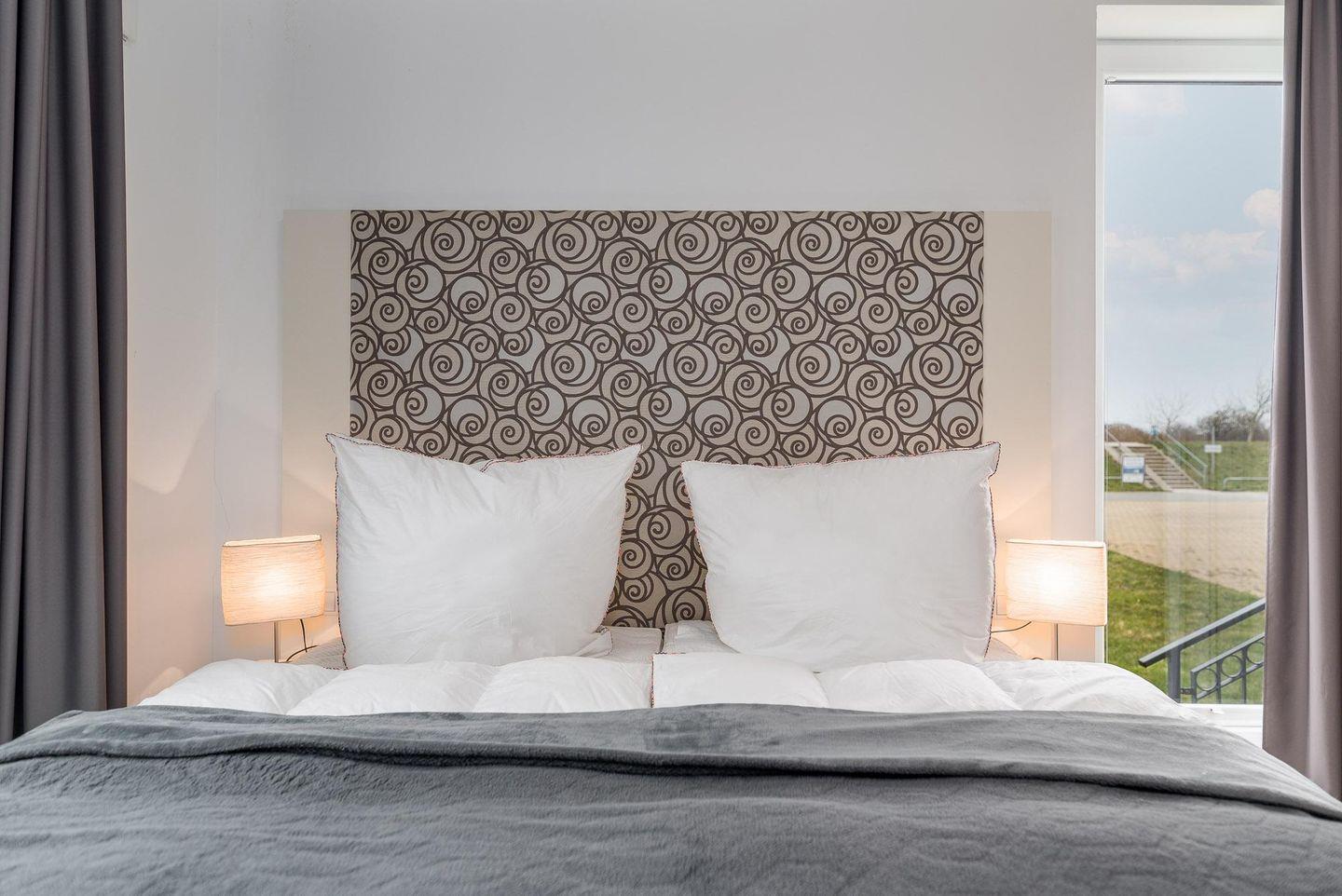 Im SCHAFZIMMER sorgt dann ein gemütliches Doppelbett (180 x 200 cm /getrennte Matratzen) für angenehme Urlaubsträume. Ein besonderer Hingucker der Wohnung sind die „Vintage -Türen“ (Jugendstil nachempfunden).