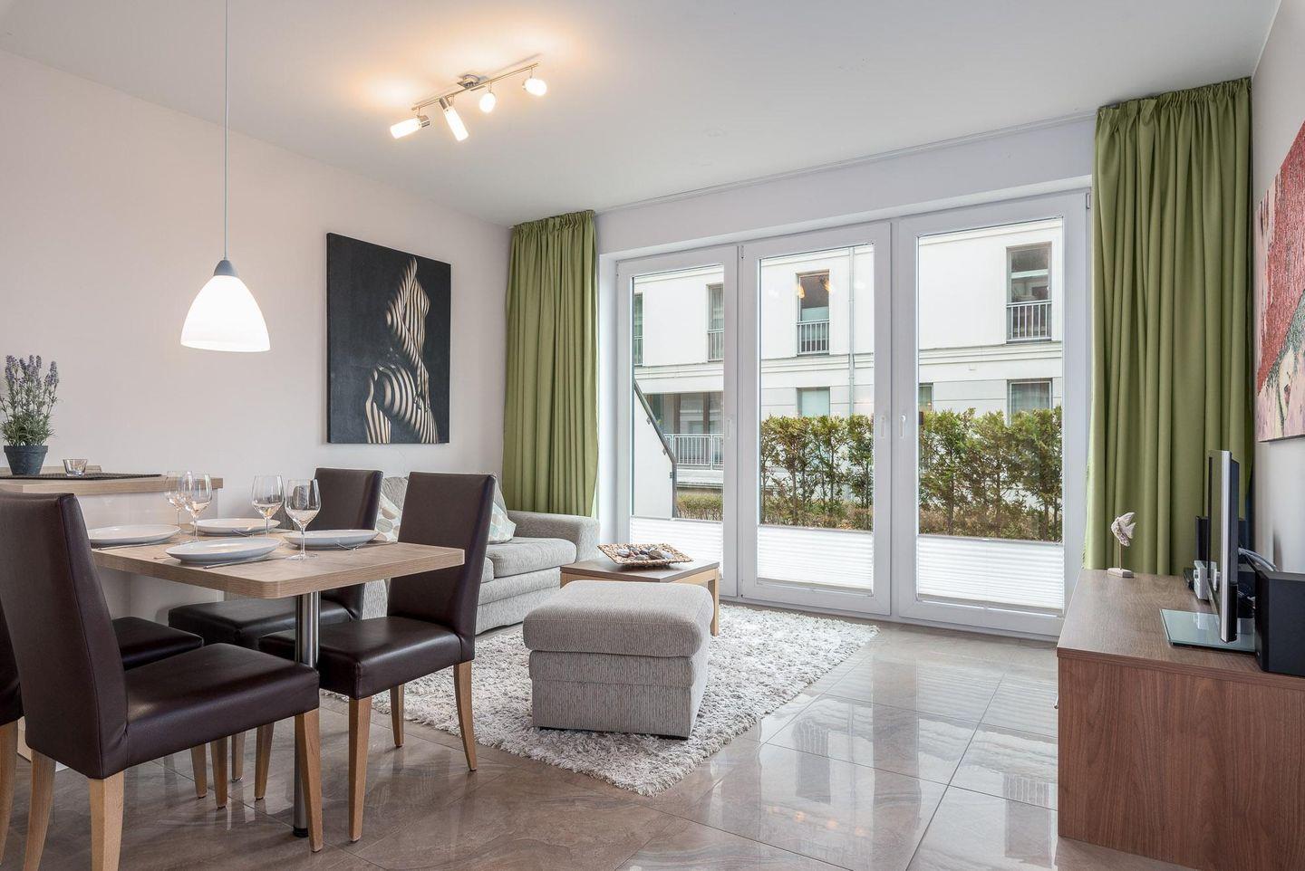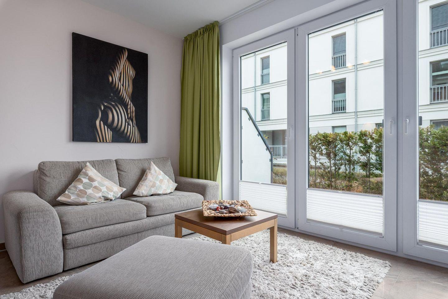 STRANDNAHE EXKLUSIVE 2-RAUM-WOHNUNG FÜR MAX. 2 ERWACHSENE UND 2 KINDER MIT SEPARATEM EINGANG UND IM HOCHPARTERRE AN DER PROMENADE.