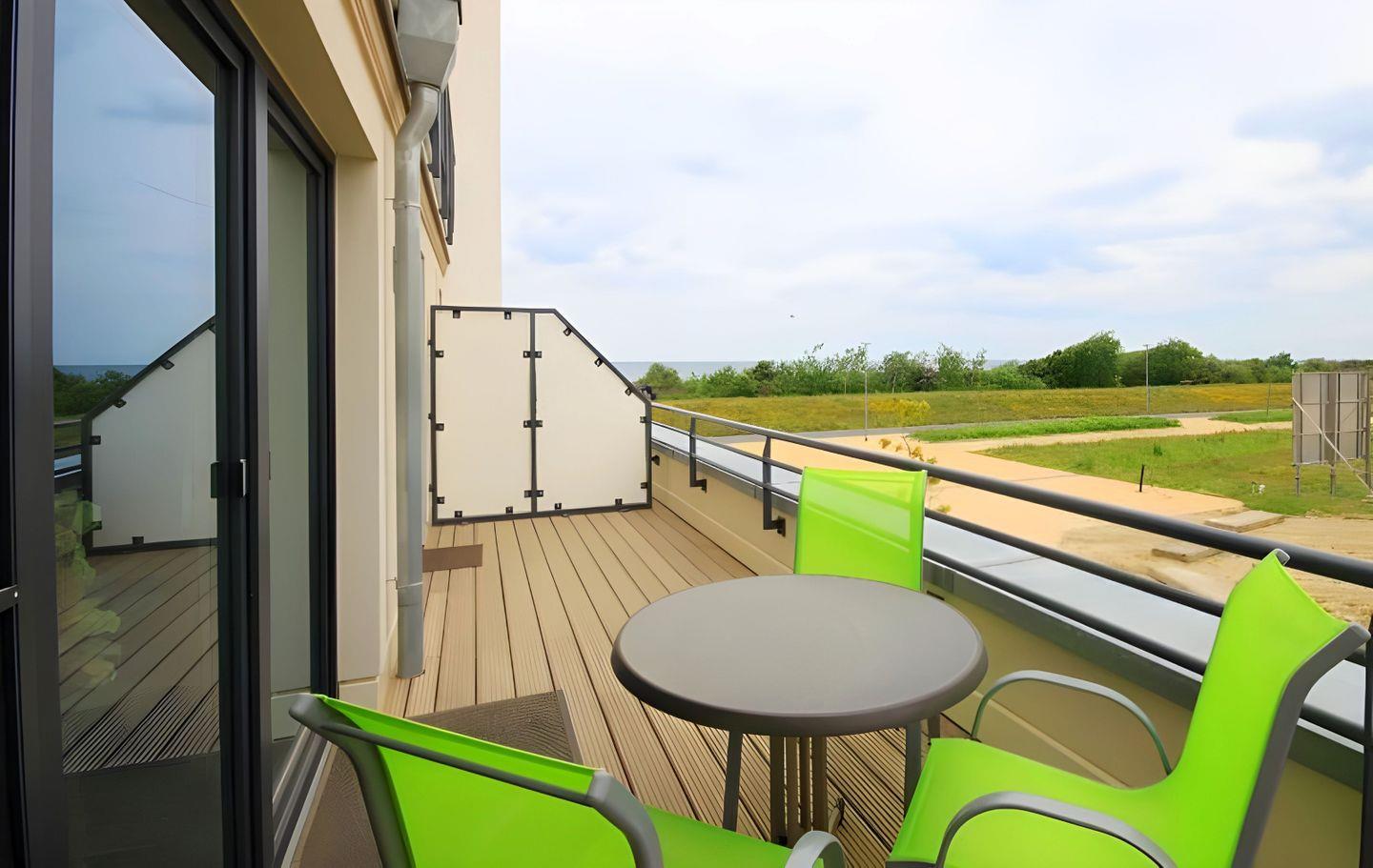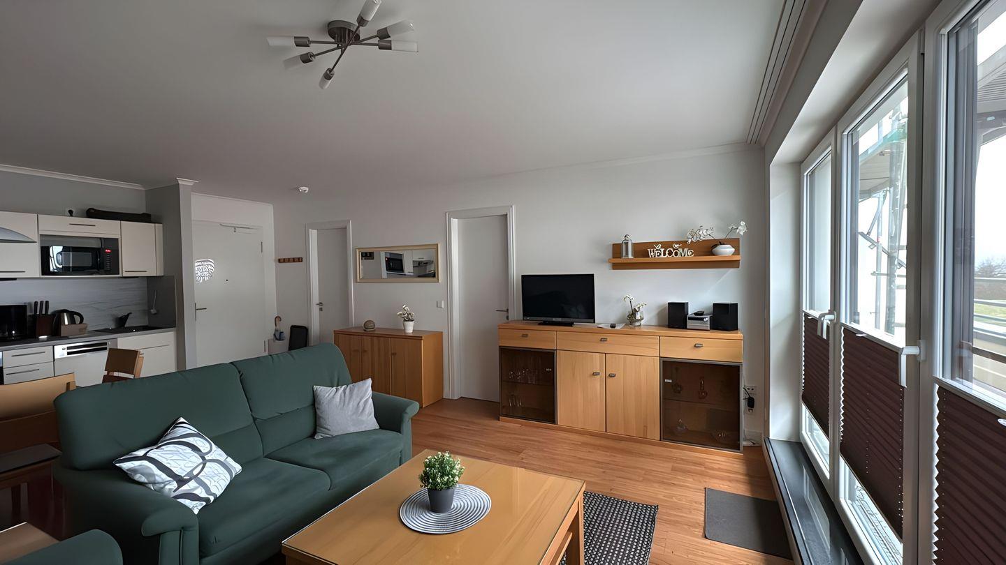 STRANDNAHE 2-RAUMWOHNUNG FÜR MAX. 3 ERWACHSENE UND 1 KLEINKIND MIT BALKON UND SEITLICHEM MEERBLICK IM 1. OG.