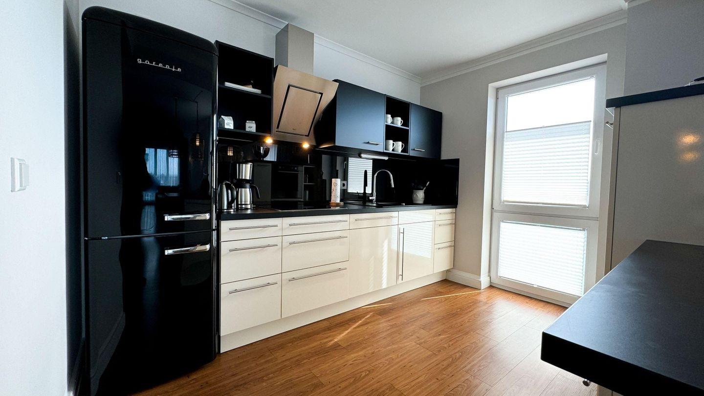 Das Penthouse in der Villa Bernstein in Börgerende bietet auf ca. 117 m² modernen Wohnkomfort für bis zu vier Personen. Ihnen stehen zwei Schlafzimmer, ein großzügiger Wohnbereich mit offen gestalteter Küche, ein Balkon mit eingeschränktem Meerblick sowie ein Kamin zur Verfügung. Zur Ausstattung gehören WLAN, Kabel-TV, ein kostenloser Privatparkplatz und ein eigener Strandkorb.