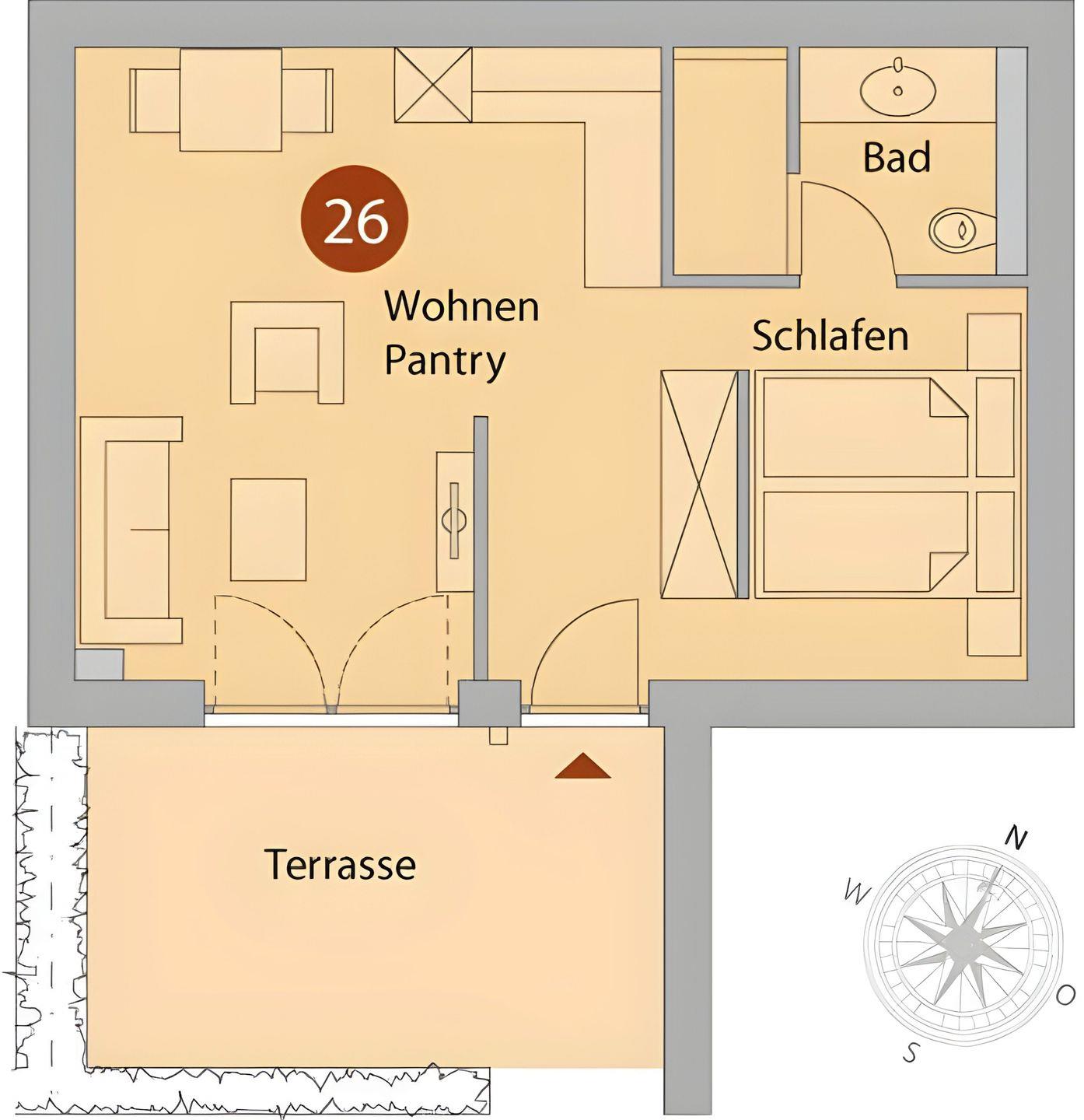 STRANDNAHES 1-RAUM-APARMENT FÜR MAX. 2 PERSONEN, TERRASSE UND SEPARATER EINGAN IM EG.
