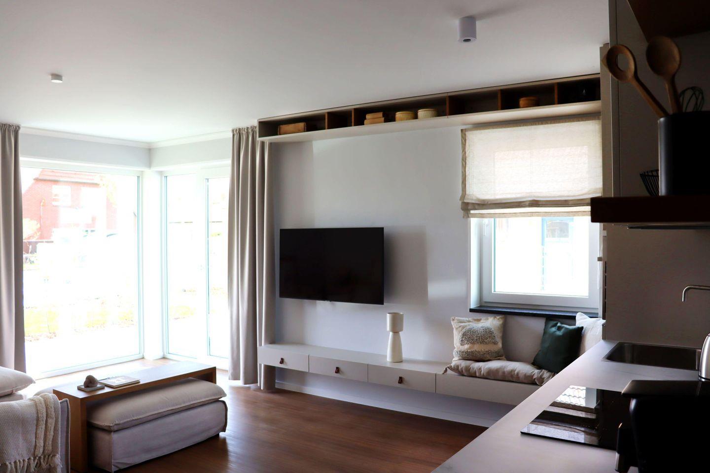 Schränke mit ausgiebig Stauraum sowie ein TV dürfen natürlich auch nicht fehlen.