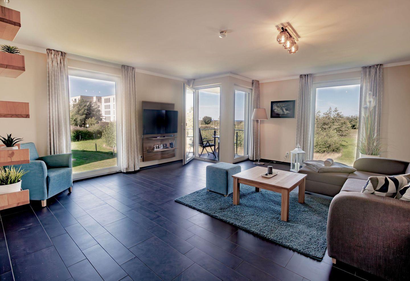 In der 60 m² großen Wohnung 1.1 im Haus Calmsailing ist der Blick auf die