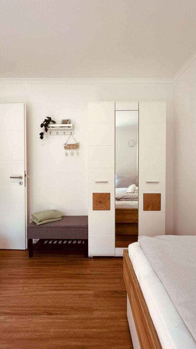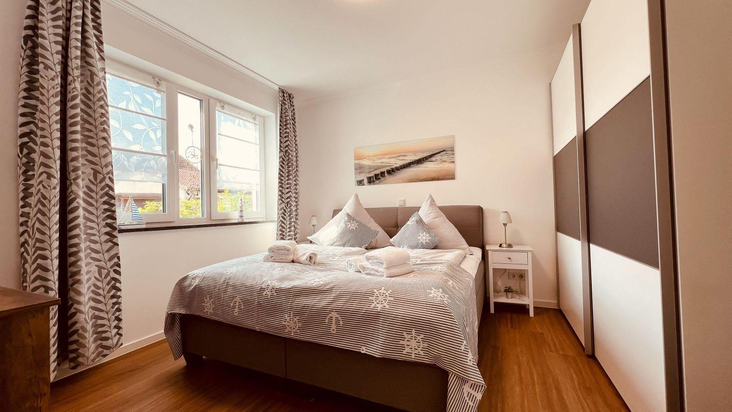 Das erste Schlafzimmer ist mit einem großzügigen Boxspringbett (180 x 200 cm)
