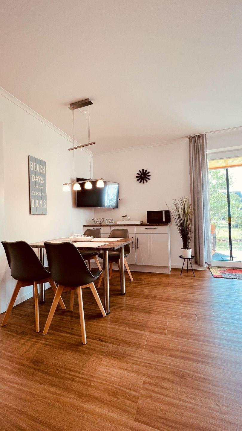 Der Essbereich umfasst 4 bequeme Sitzplätze und lädt neben dem Essen zum
